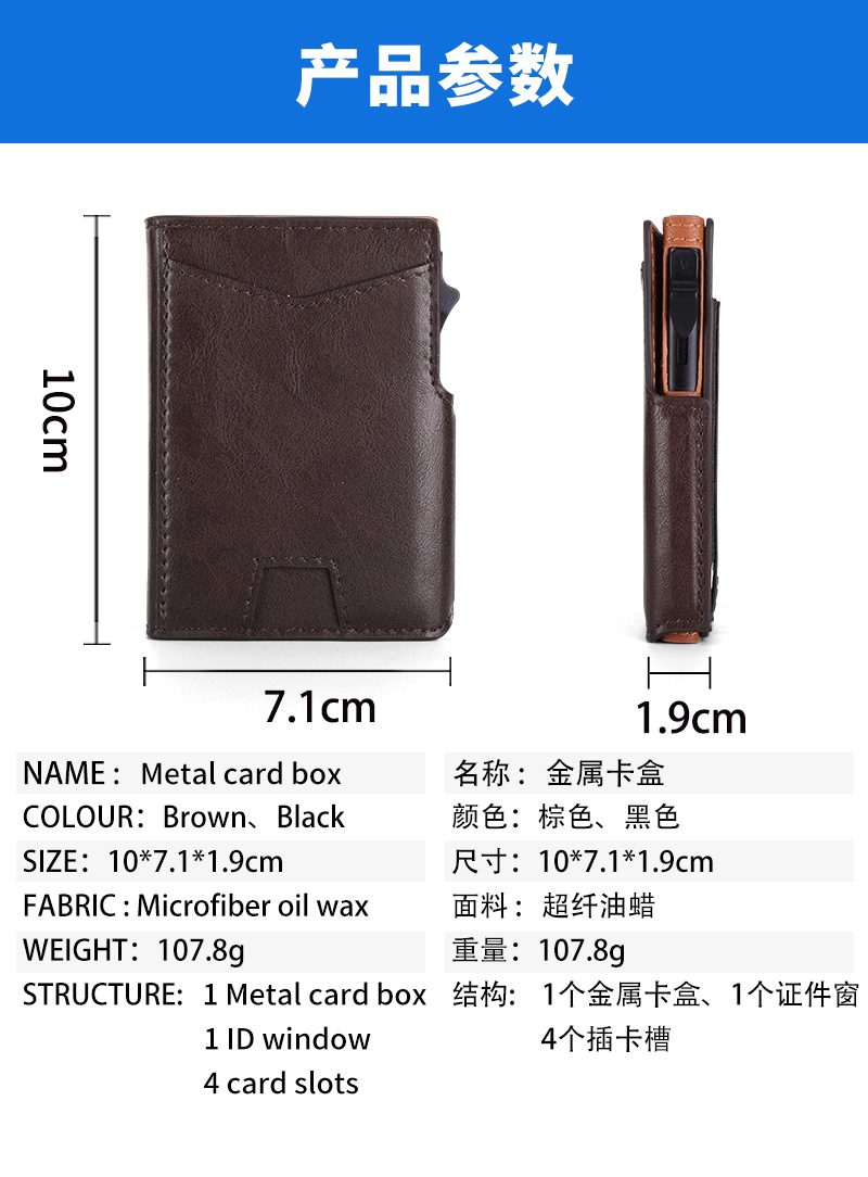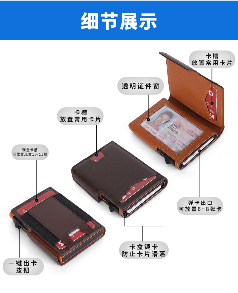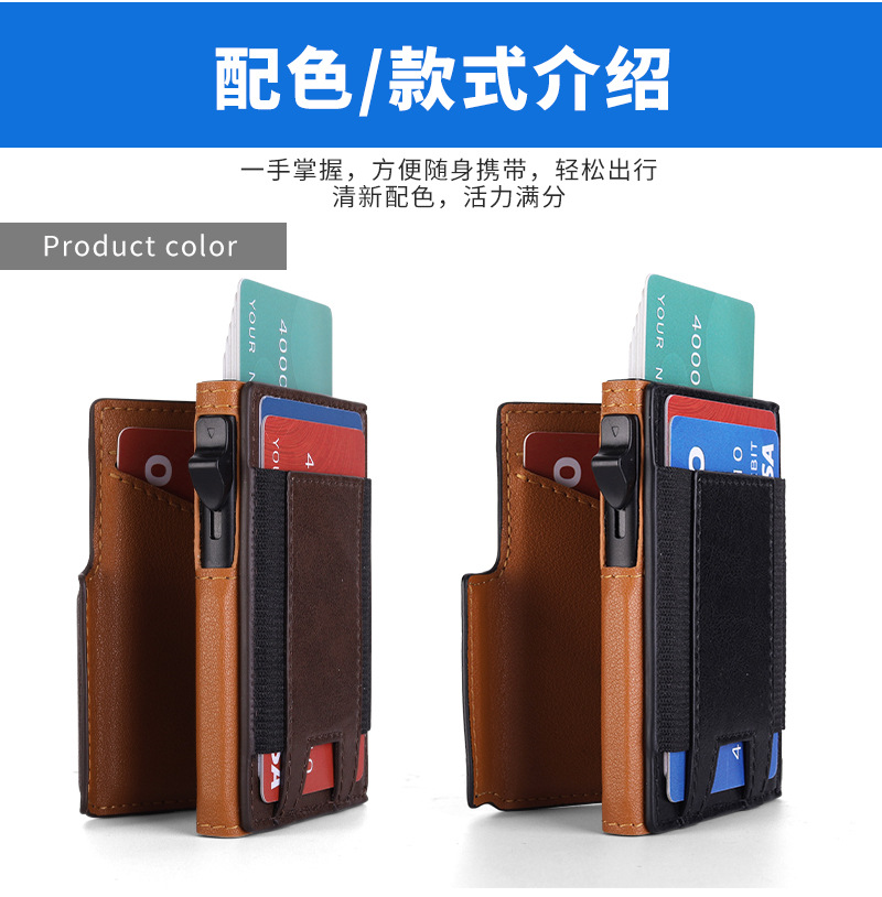 Cartera de documentos de gran capacidad con múltiples tarjetas transfronterizas, caja de tarjetas automática con tapa abatible para hombres, billetera de cuero ultrafina para hombres