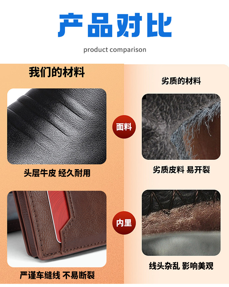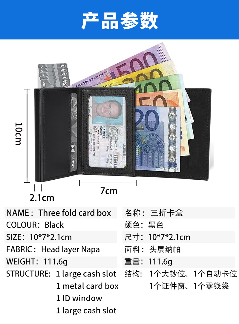 Cartera de cuero para hombre con tarjeta de crédito multicapa magnética ultrafina transfronteriza Cartera antirrobo para hombre