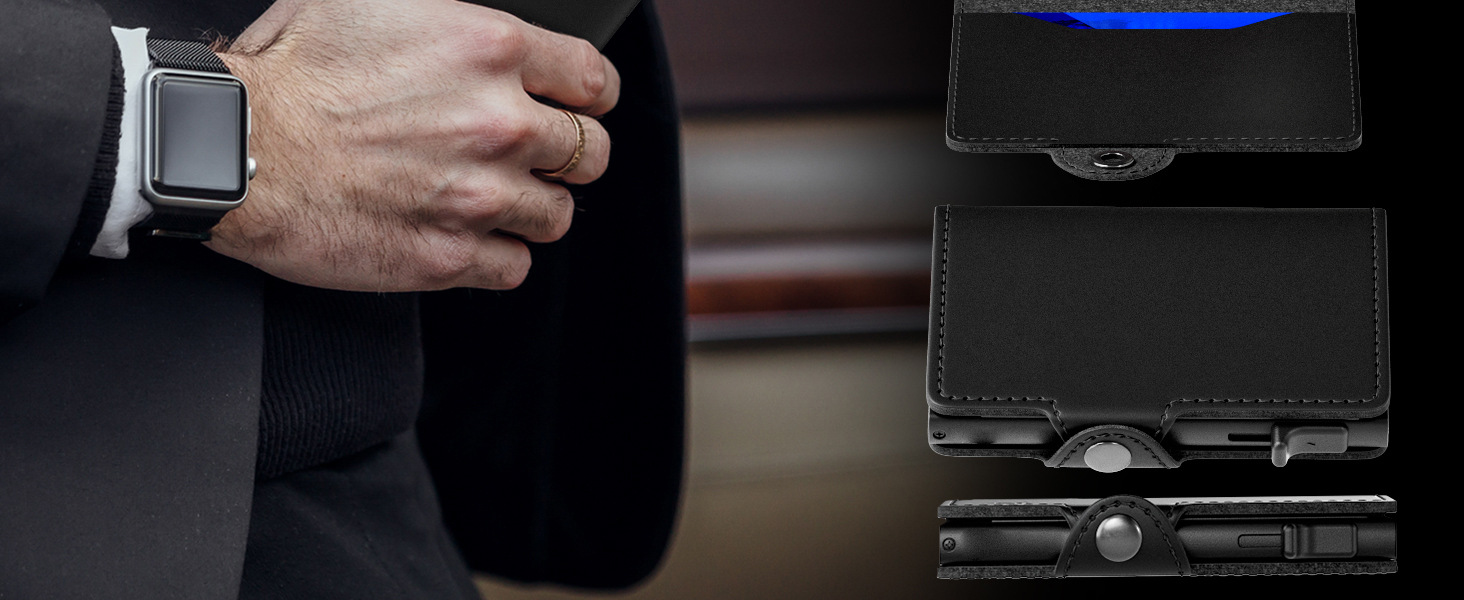 Caja de tarjeta de empuje lateral con cepillo antirrobo RFID transfronterizo, hebilla de clip de metal emergente automática, paquete de tarjeta antidesmagnetizante de gran capacidad