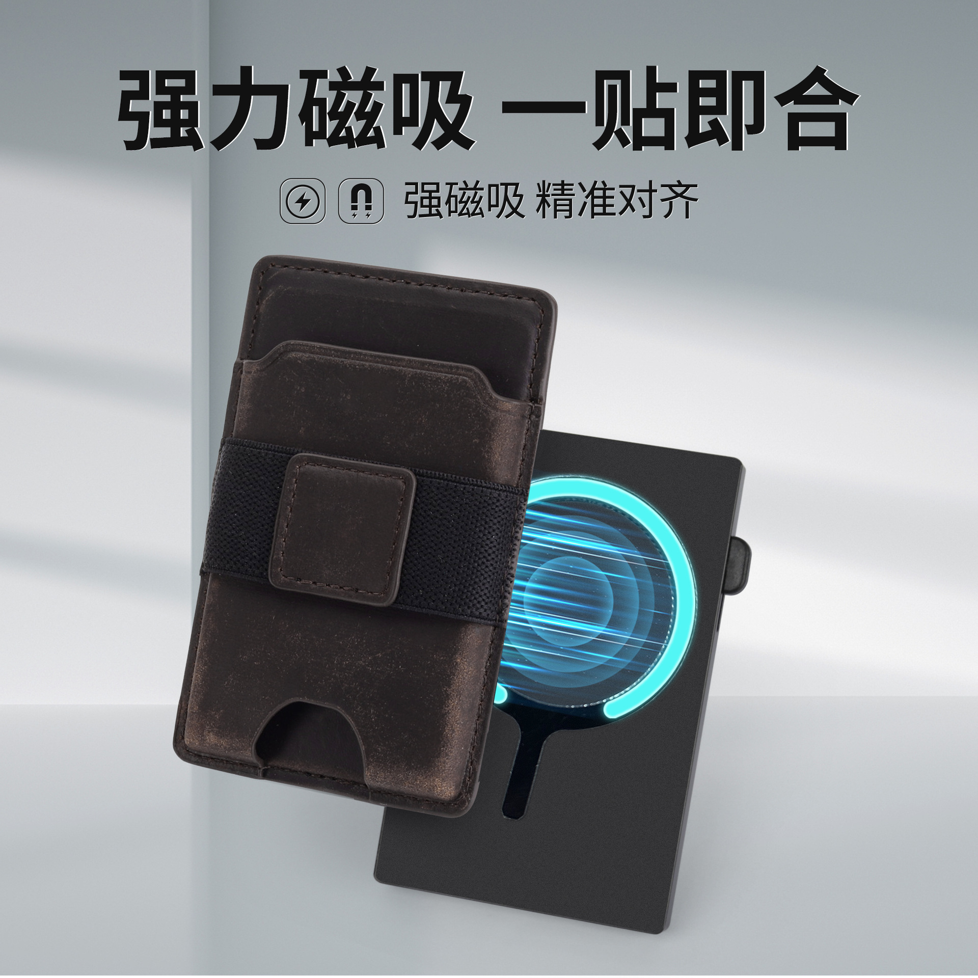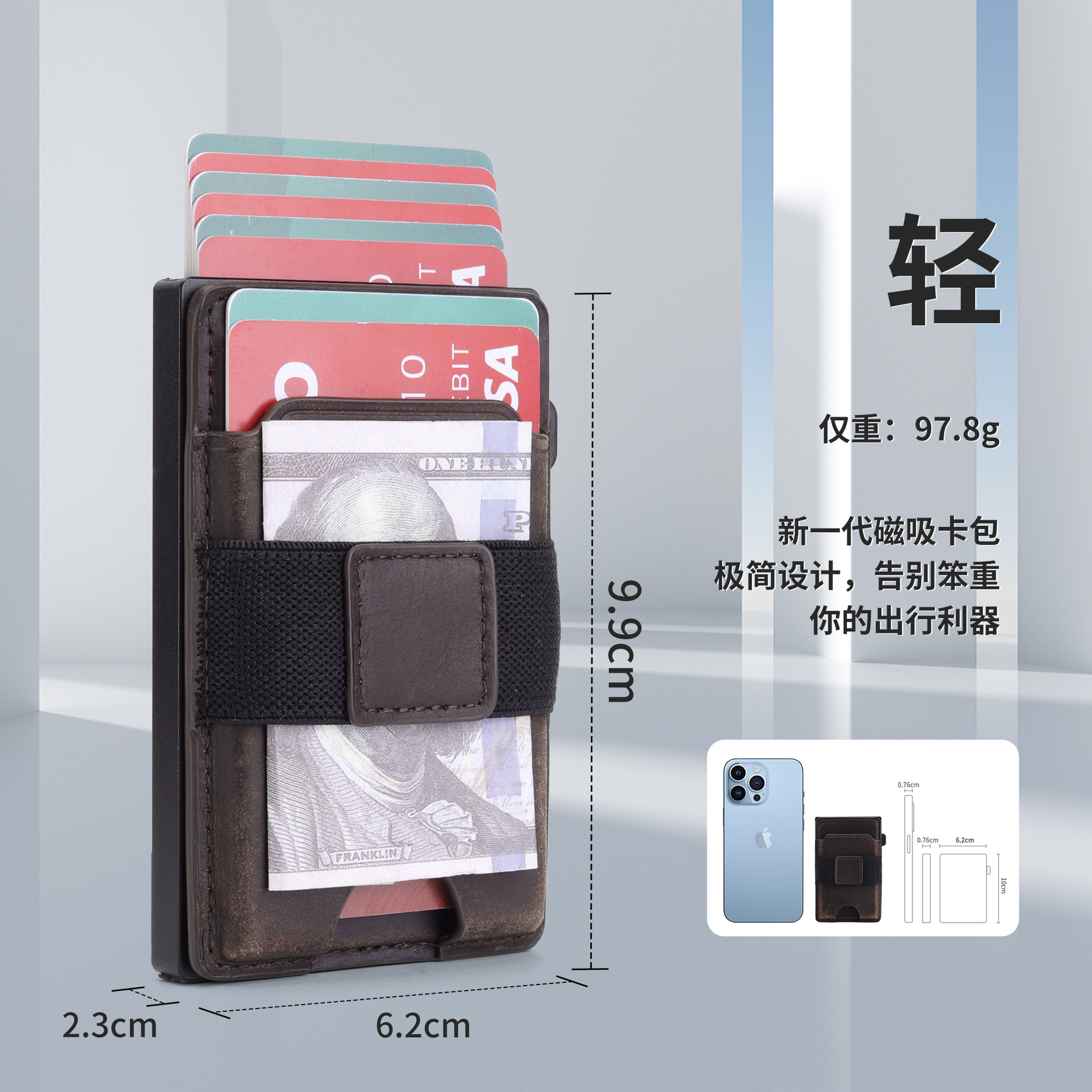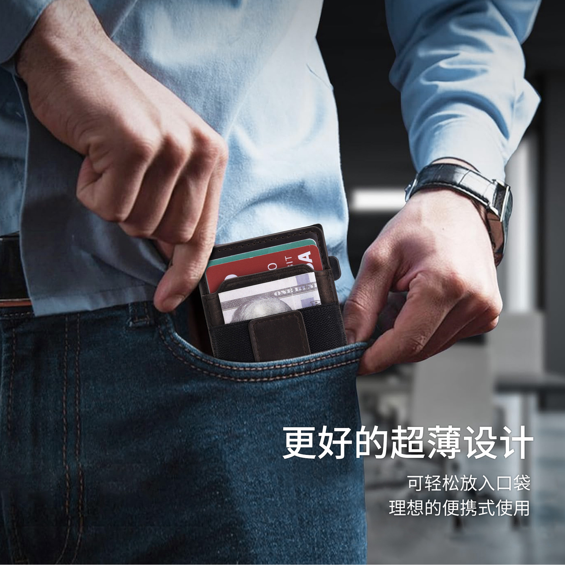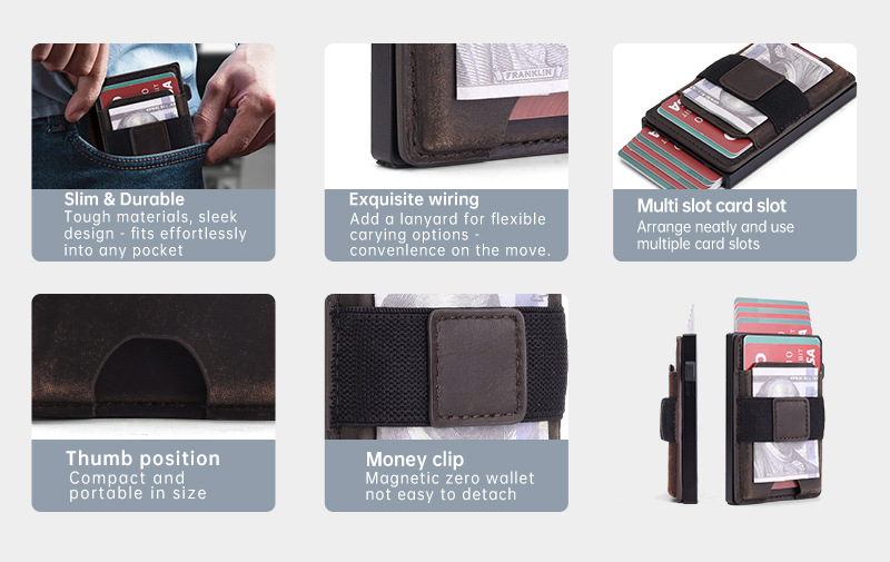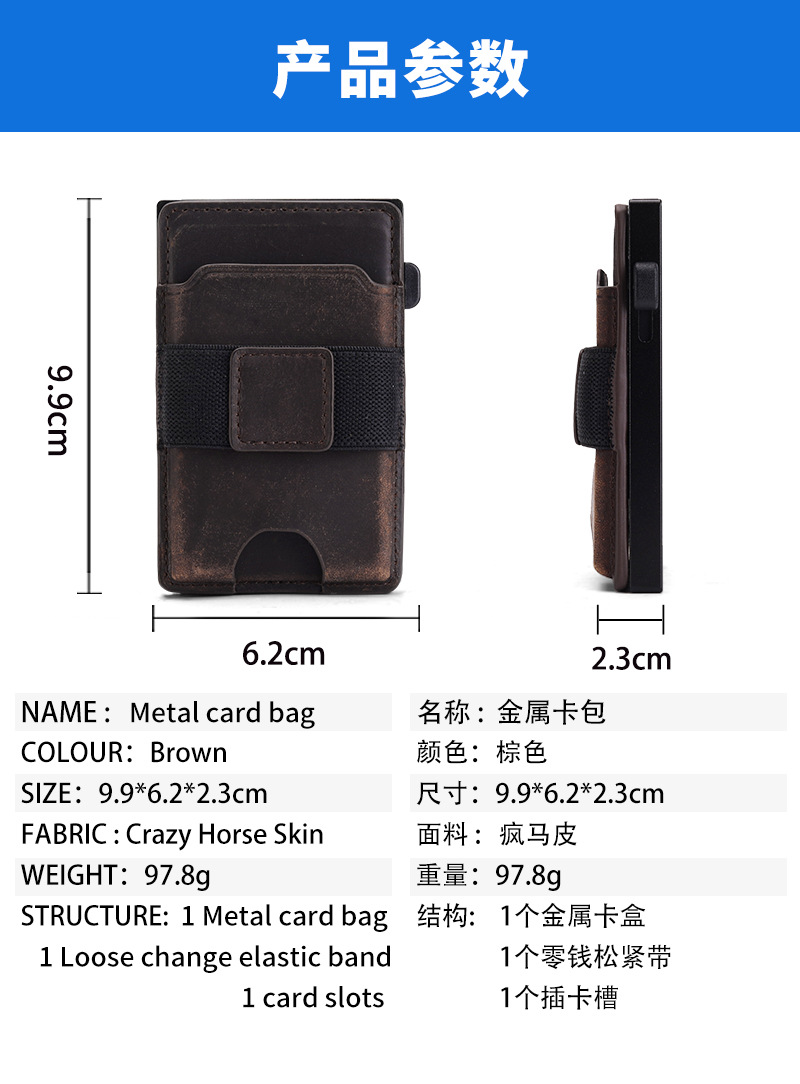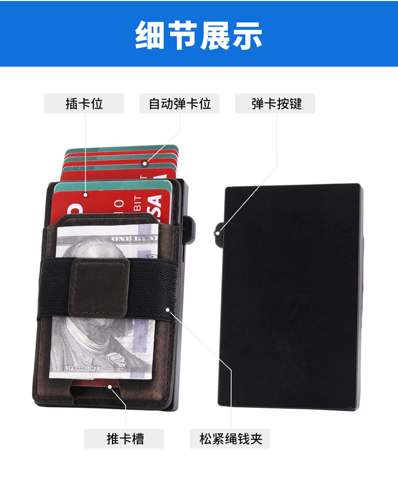Bolso de tarjeta multifuncional de moda ultrafino transfronterizo, caja de tarjeta de metal emergente automática, bolso de tarjeta de cuero magnético dos en uno para hombre