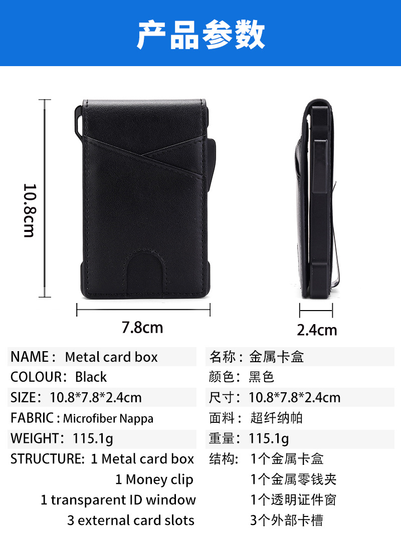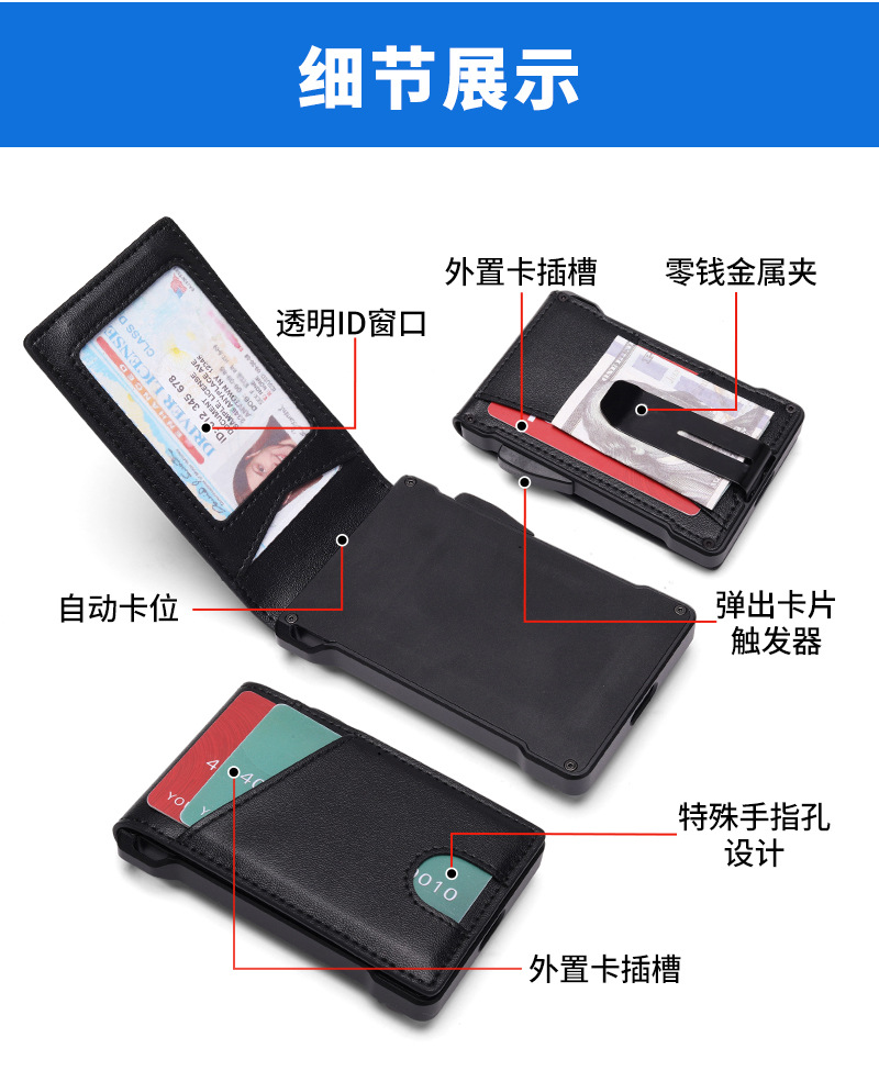 Cartera de múltiples tarjetas de empuje lateral de comercio exterior Cepillo antirrobo para hombres Caja de tarjetas multifunción Cartera para hombres con solapa de fibra de carbono