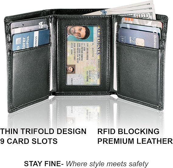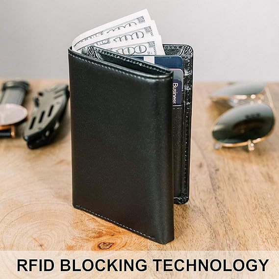 Cartera de tres pliegues con blindaje RFID ultrafino para hombres con múltiples asientos para tarjetas, billetera de gran capacidad, billetera de cuero empresarial para hombres