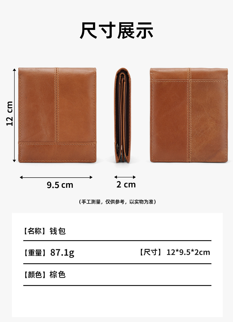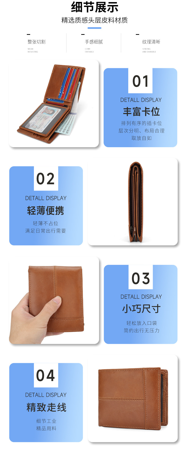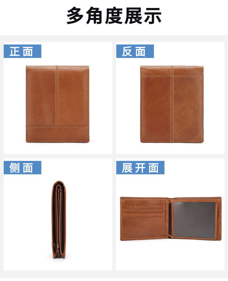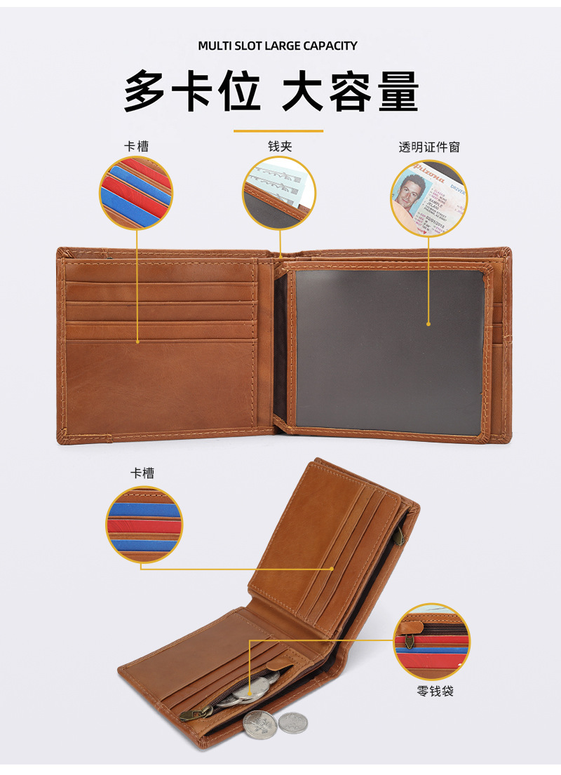 Cartera de ocio de negocios de Europa y los Estados Unidos, cartera de cuero real de tres plegados, cartera de cuero RFID antirrobo, cartera de cuero de vaca para hombres