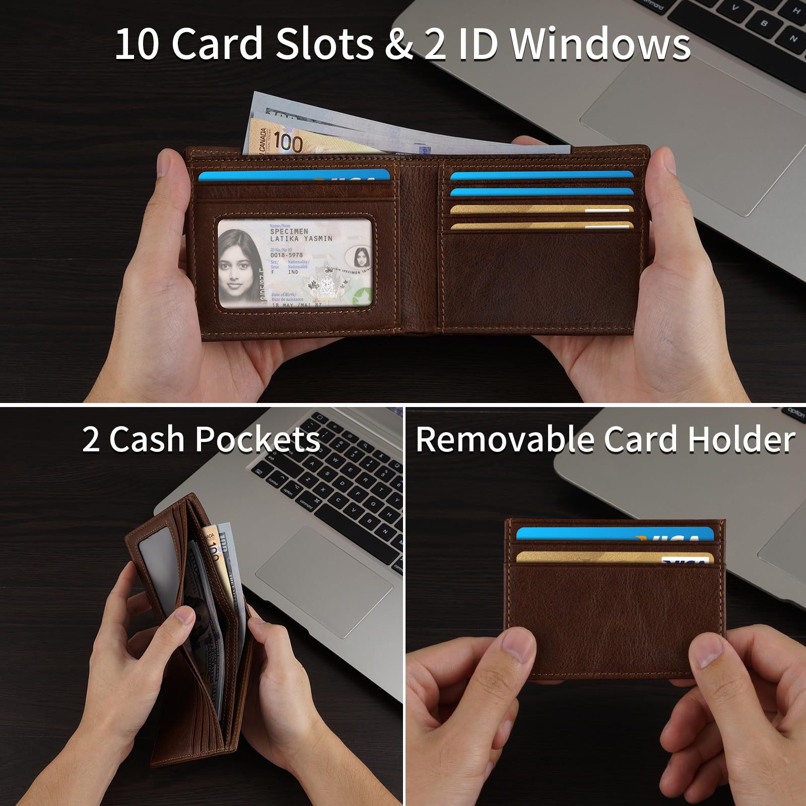 Cartera de fibra de carbono de los hombres bienes genuinos al por mayor de cuero de Caballo Loco de cuero antirrobo cepillo corto cartera primera capa de piel de vaca billetera