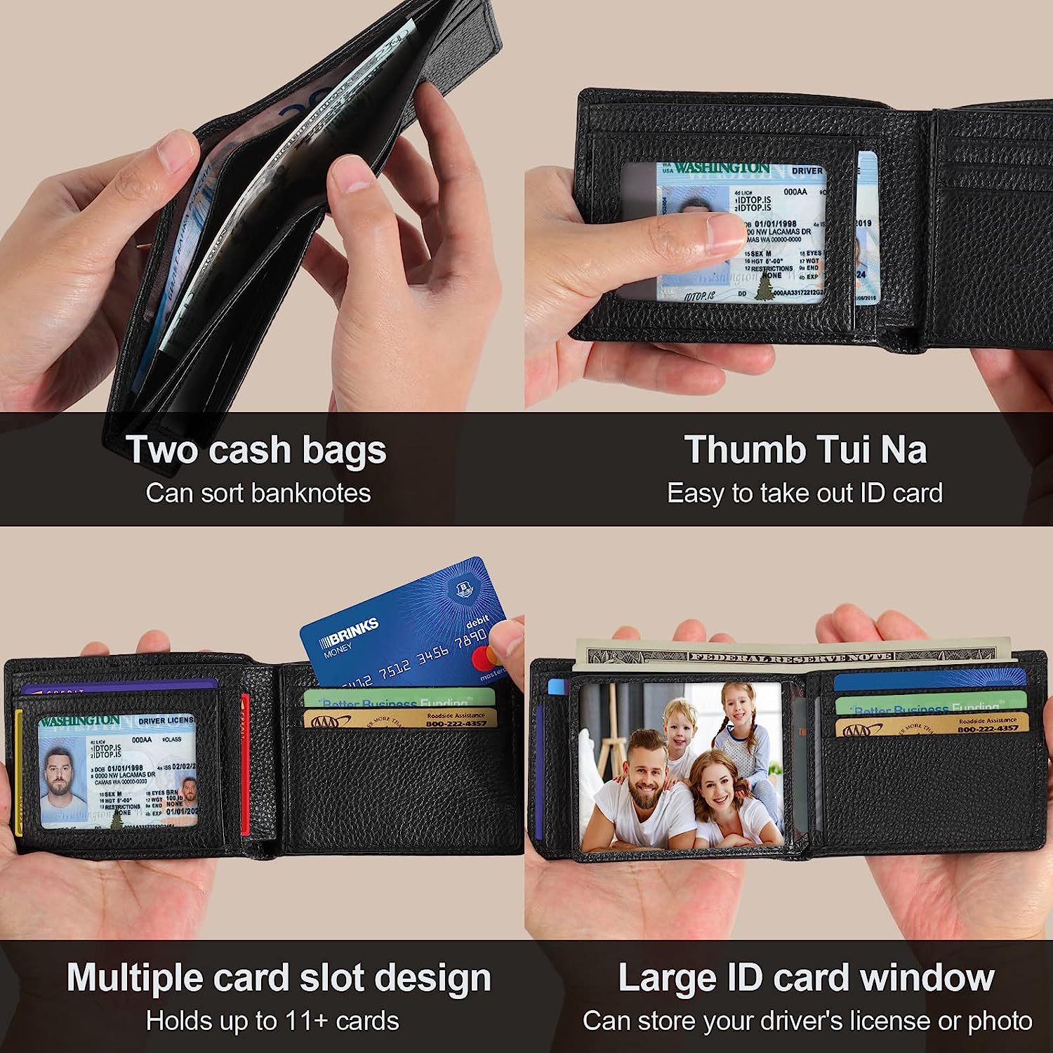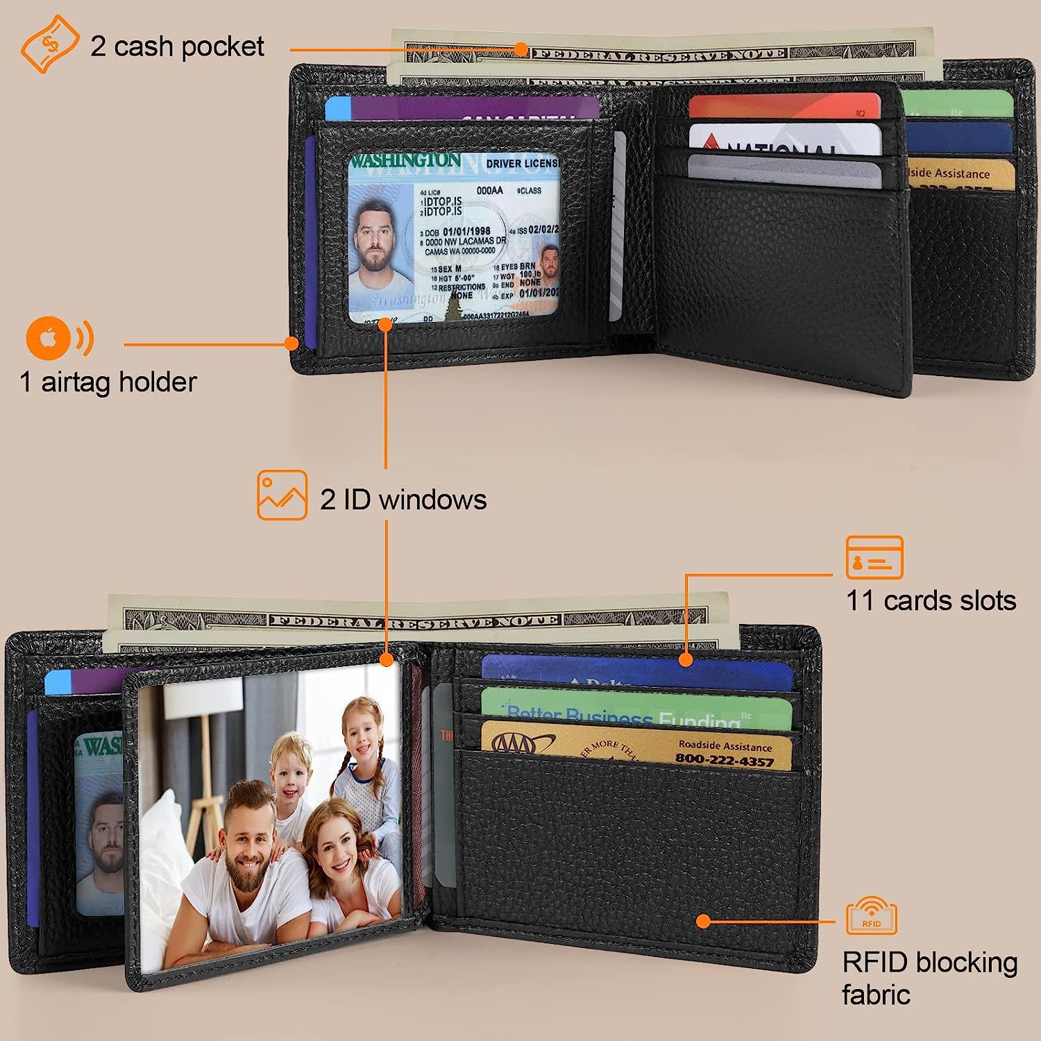 Cartera de cuero transfronteriza para hombres billetera rastreadora de productos genuinos portatarjetas de los hombres billetera de cuero de capa superior lisa
