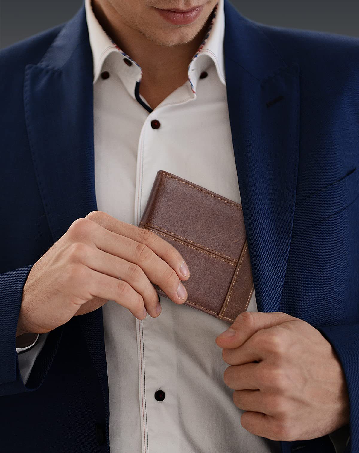 Comercio exterior popular Cartera de gran capacidad primera capa billetera corta RFID al por mayor billetera de fibra de carbono billetera de piel de vaca para hombres