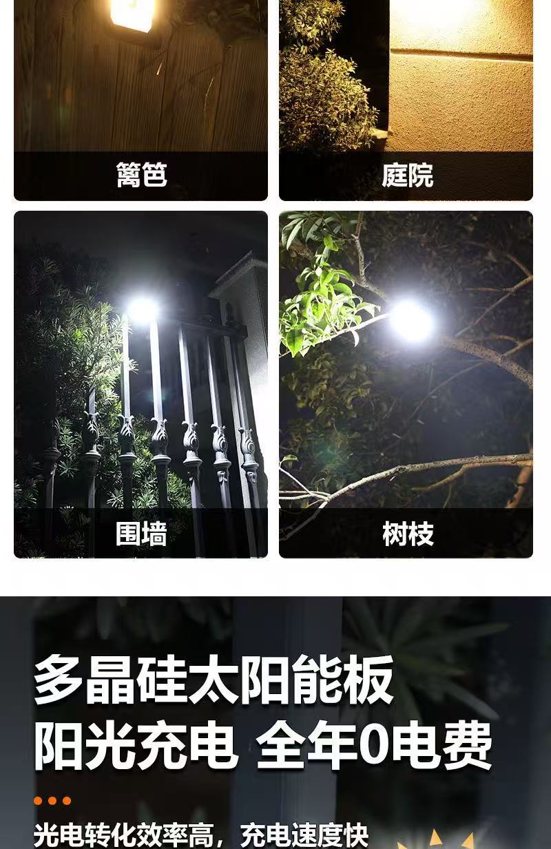 功能:一档(人体感应):人来高亮,人走灭灯二档(人体感应):人来高亮,人走微亮三档(常亮感应):天黑自动灯亮