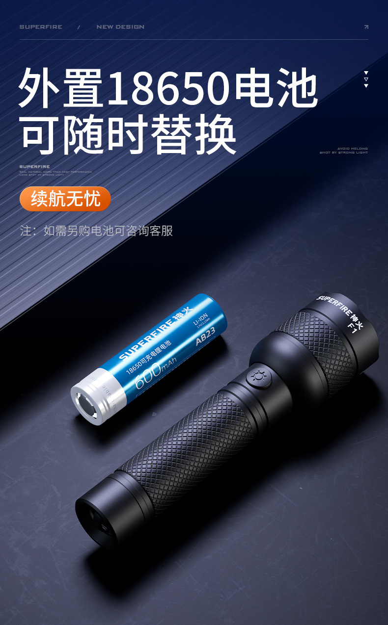 Lintera F1 + cable de carga + batería 18650 (600mAh)