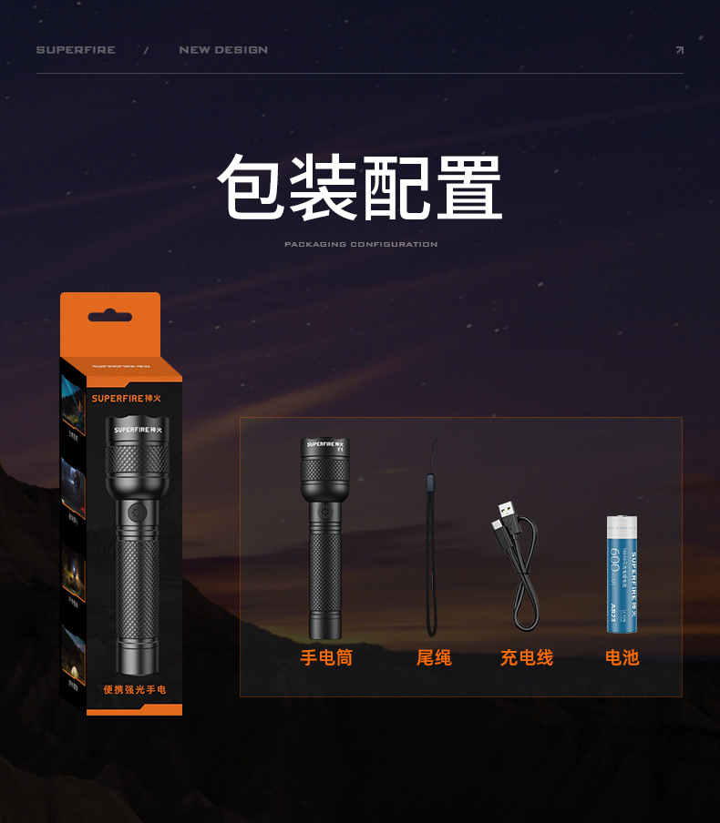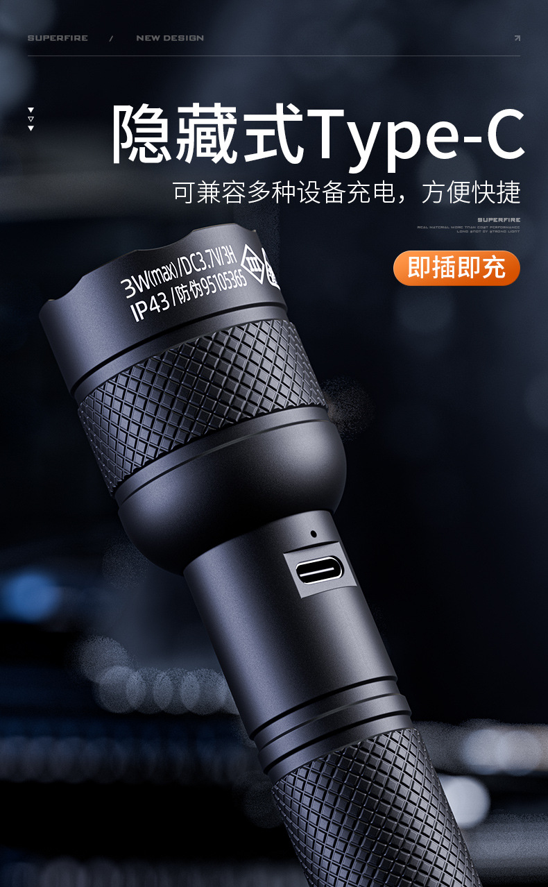 Lintera de luz recargable luminosa luminosa iluminación doméstica al aire libre LED prospector impermeable zoom mini