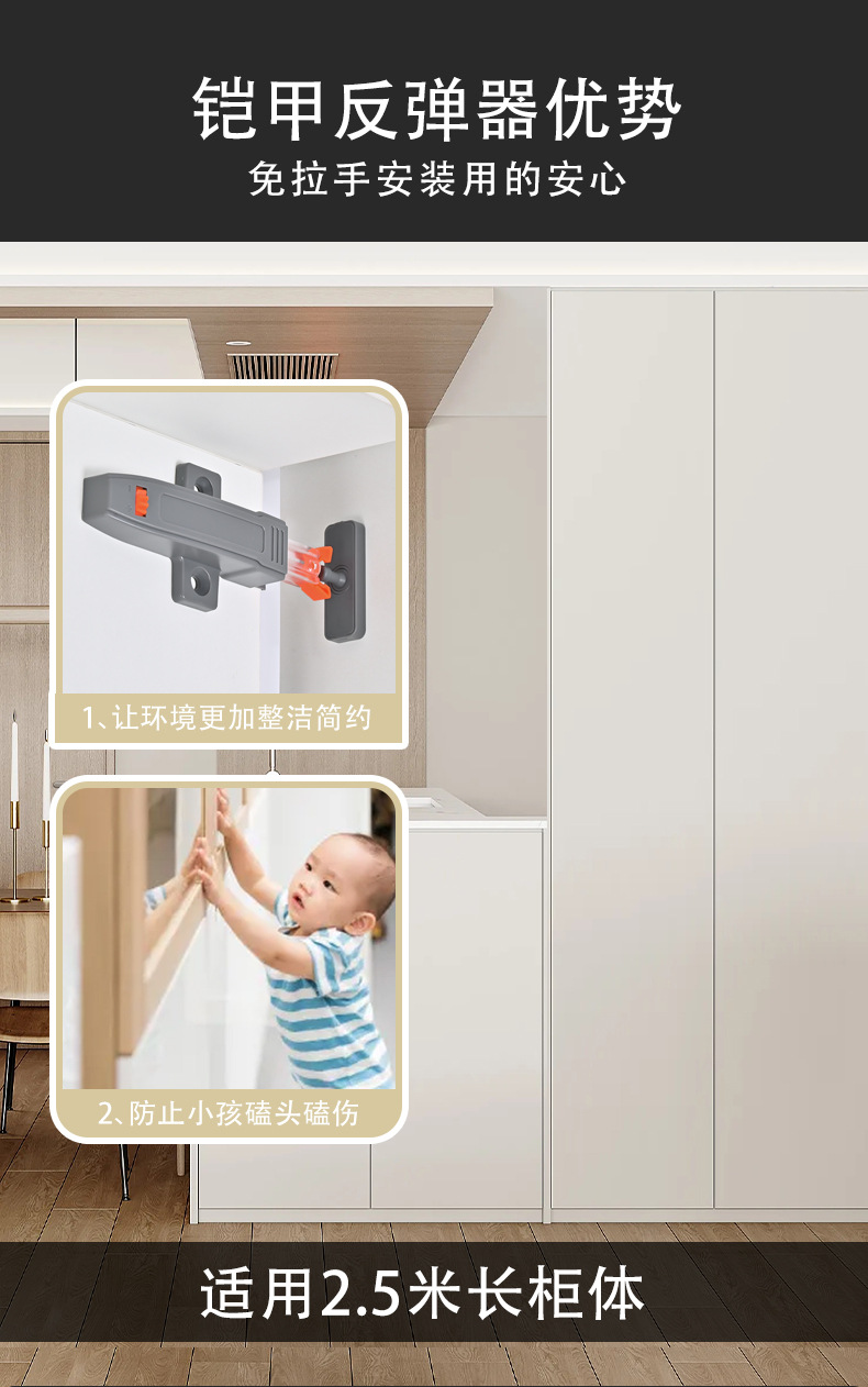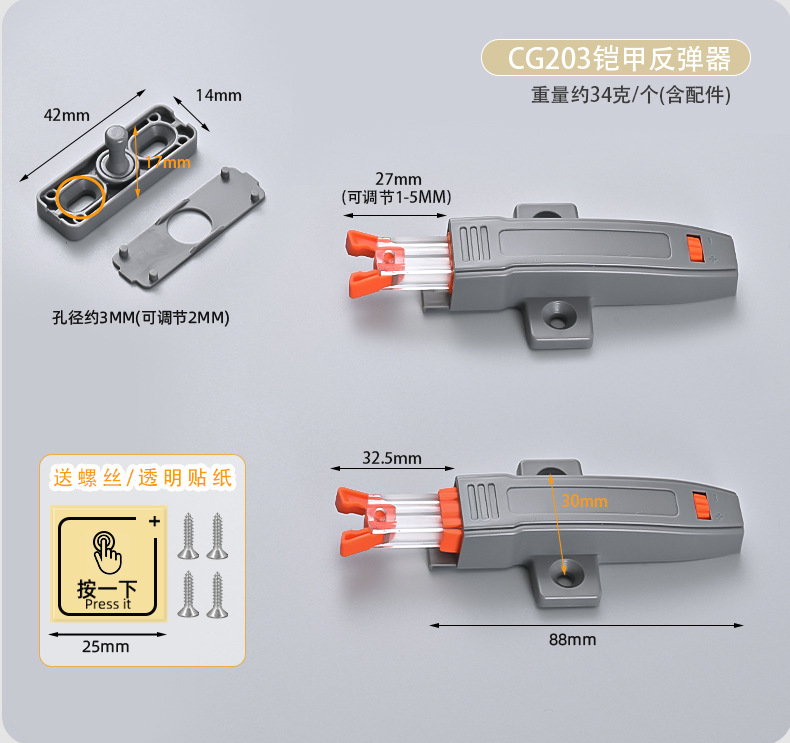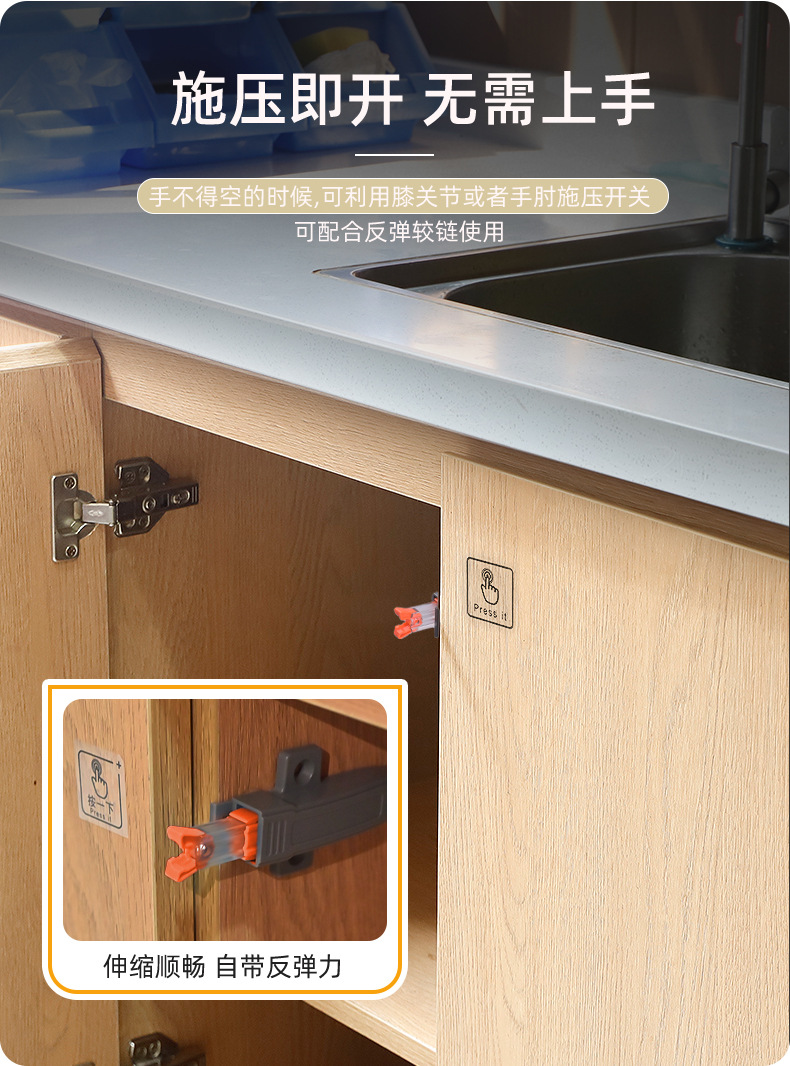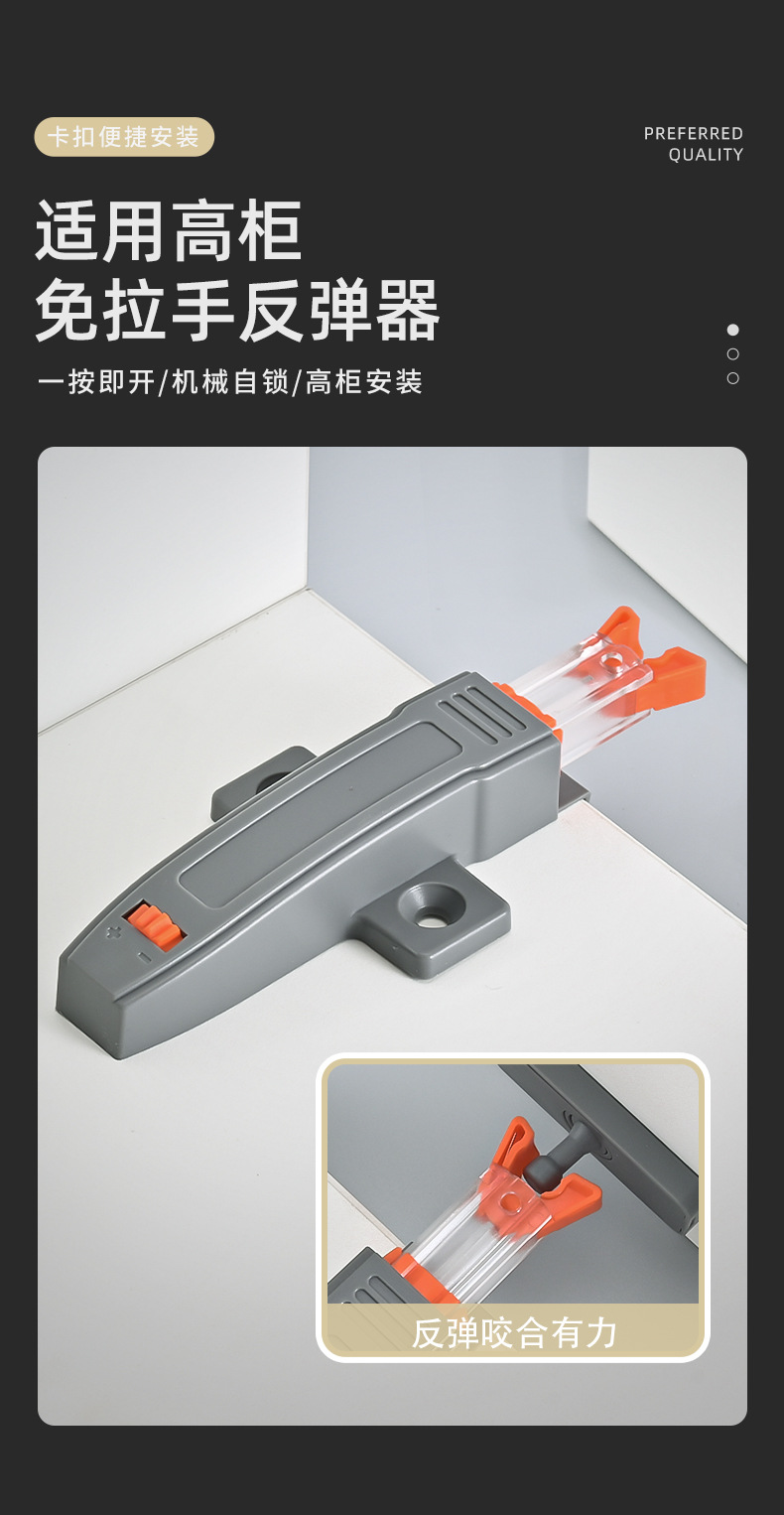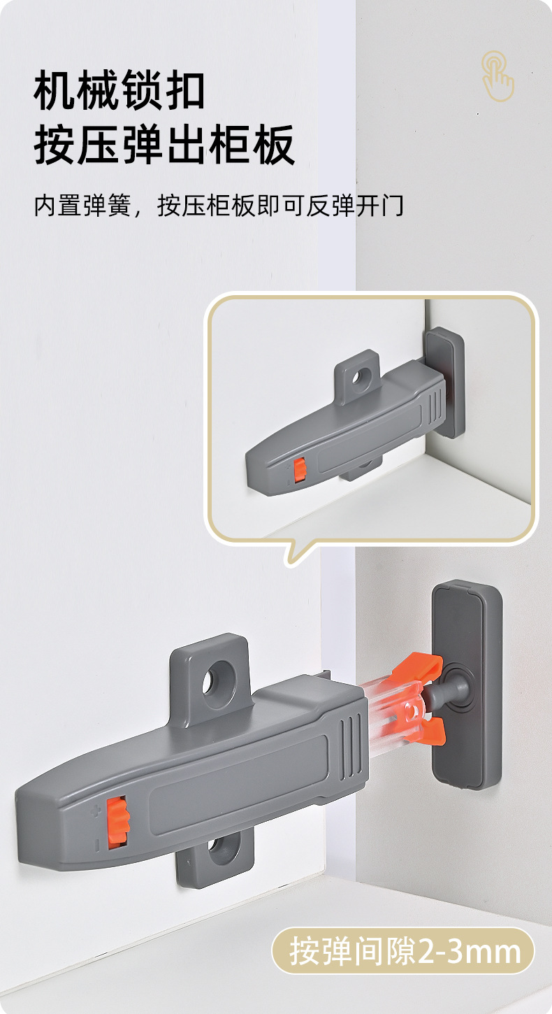 Tirador de puerta de armario con empujador de cajón autoblocante y resorte tipo "snap-on" para gafete