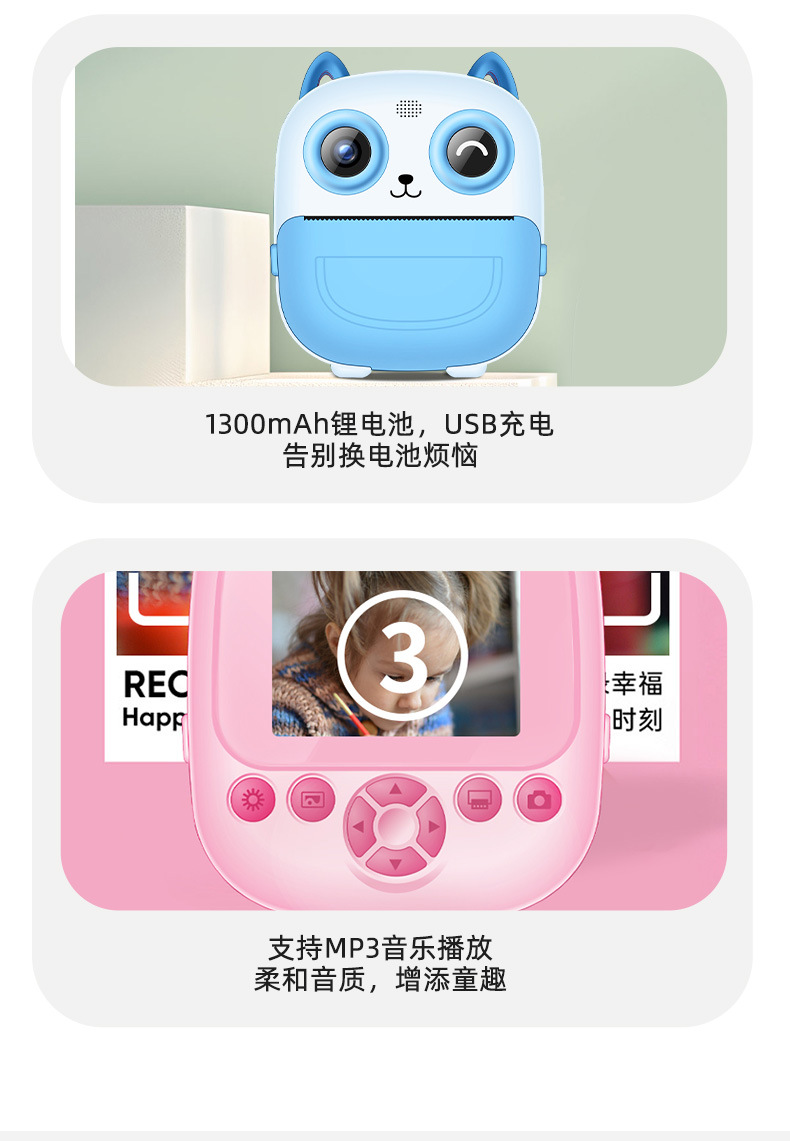 | Color | Cámara rosa + 1 rollo de papel de impresión, cámara azul + 1 rollo de papel de impresión, tarjeta de memoria 8g, tarjeta de memoria 16g, tarjeta de memoria 32g |