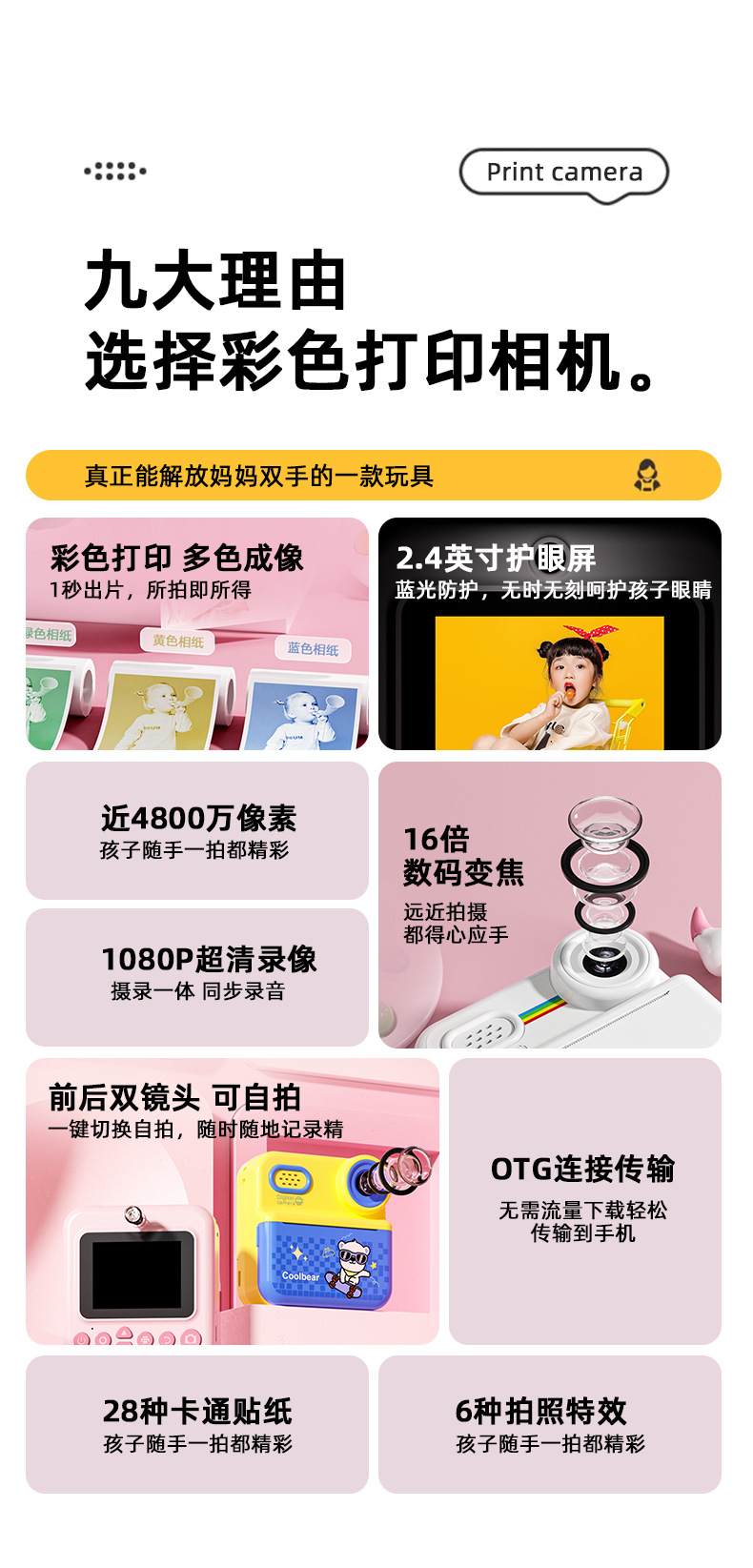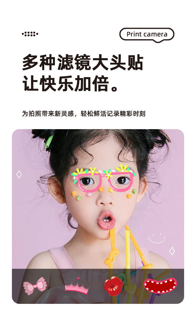 产品功能: DIY大头贴、相框 多种滤镜、即拍即得