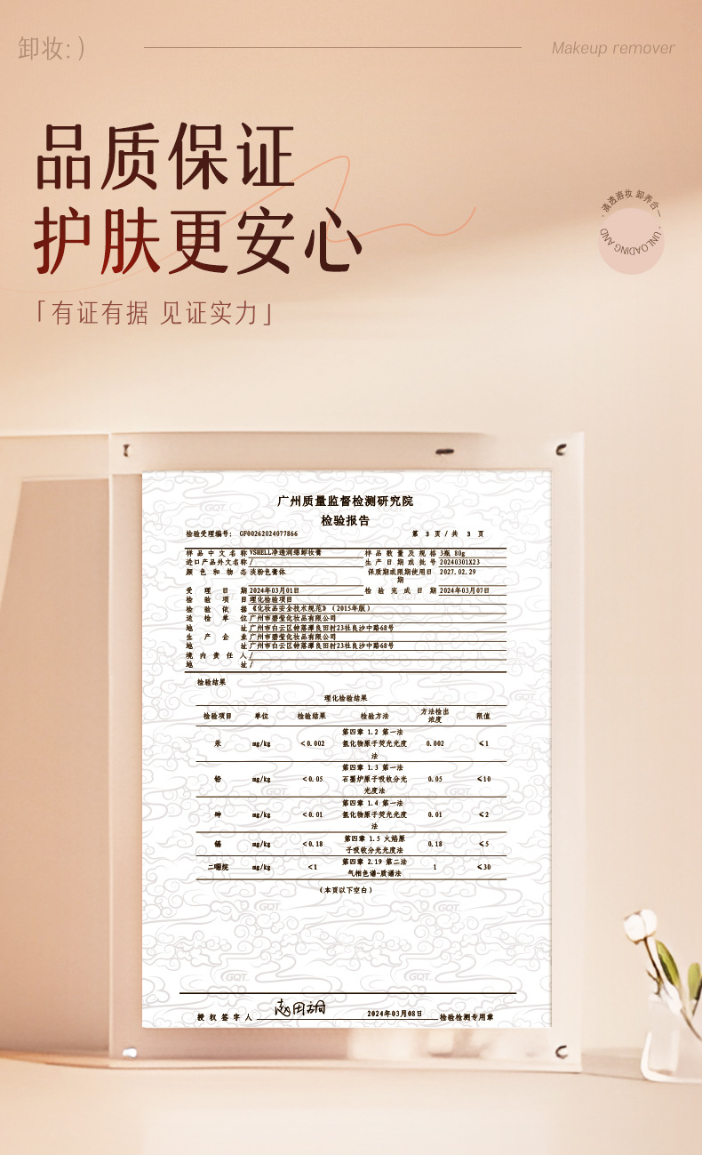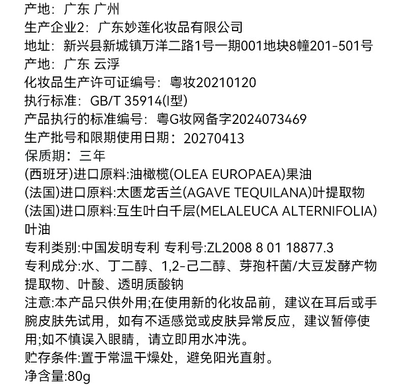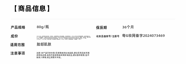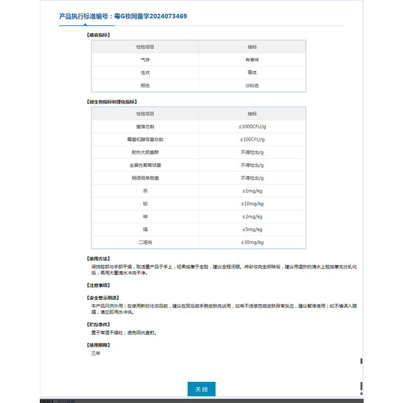 | Número de certificado de registro de cosméticos no especiales | Guangdong G Cosmetics Network preparó palabras 2024073469 |