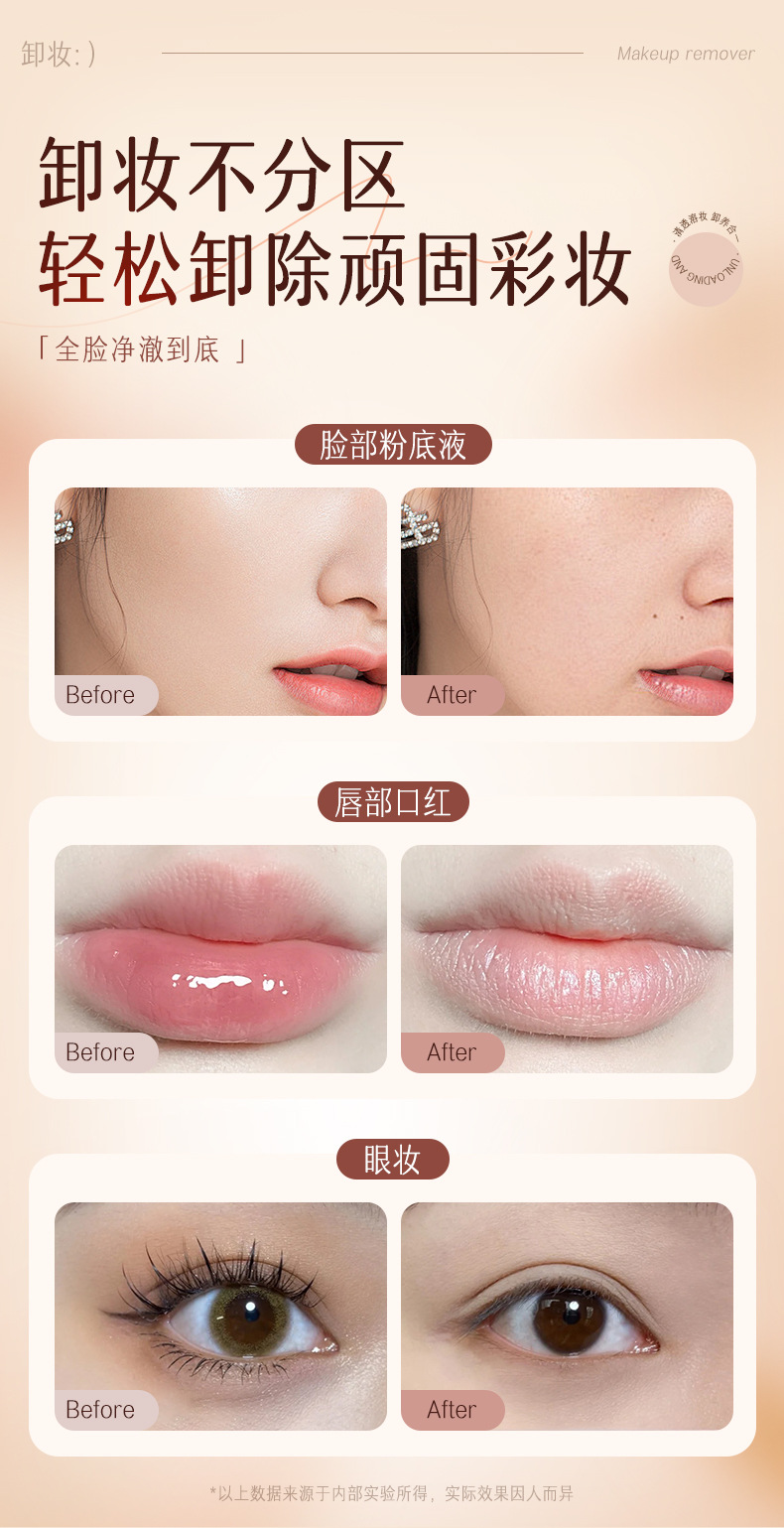 | Eficacia cosmética | Otros efectos, eliminación de maquillaje, limpieza profunda |