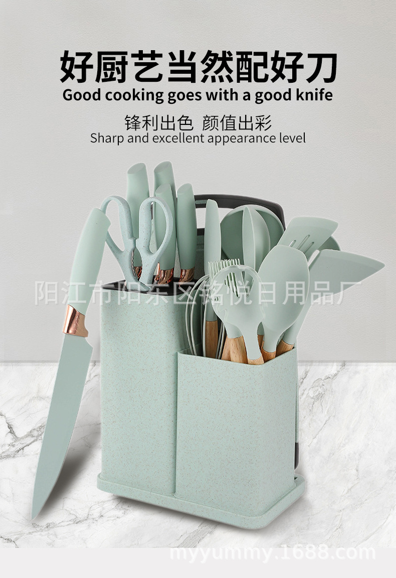 | Tamaño | Juego de cuchillos de silicona de 25 piezas [negro clásico],Juego de 25 cuchillos de silicona [Mu Xue Bai],Juego de 25 cuchillos de silicona [flor de cerezo],Juego de cuchillos de silicona de 25 piezas [lago verde],Juego de 25 cuchillos de silicona [verde claro],Juego de 25 cuchillos de silicona [gris claro] |