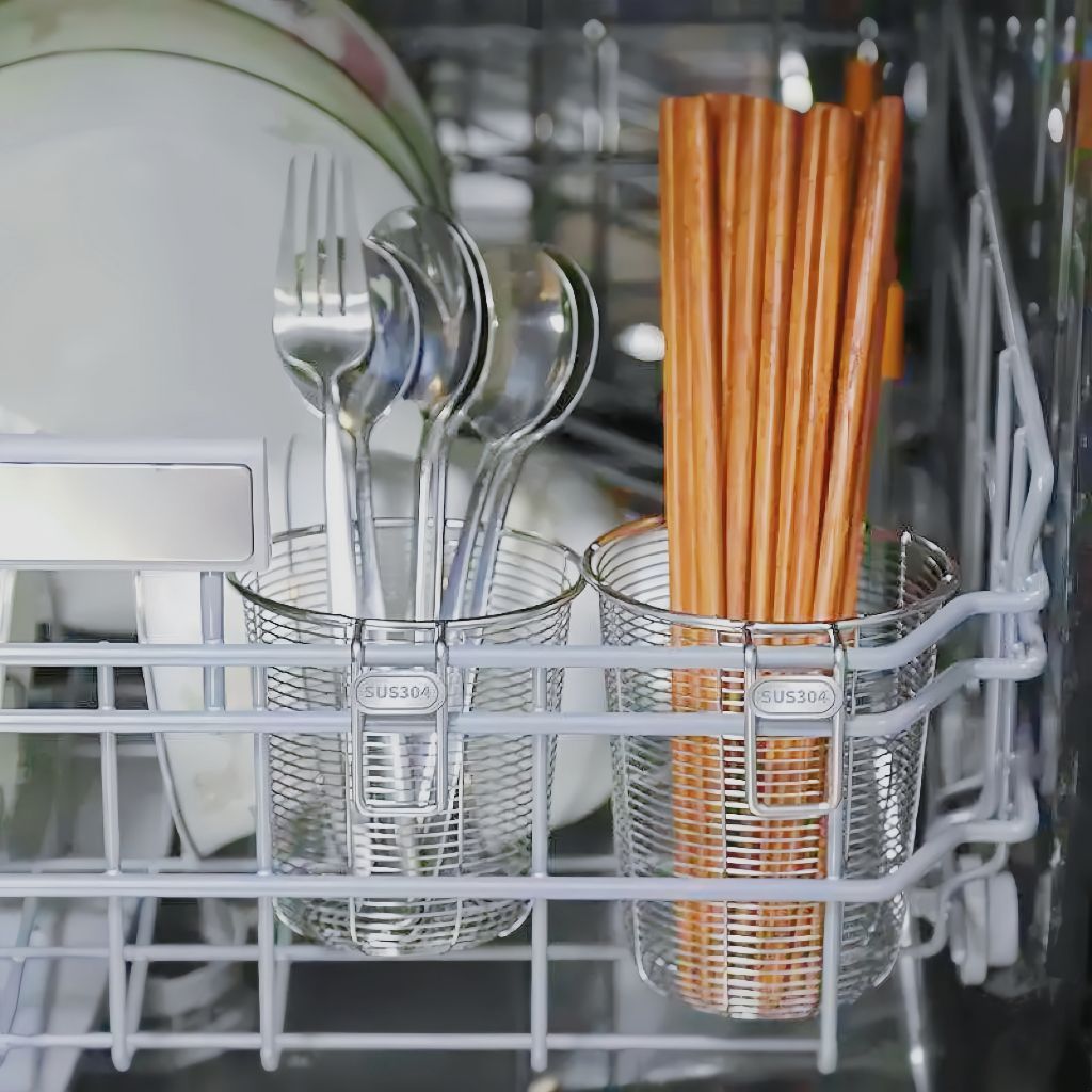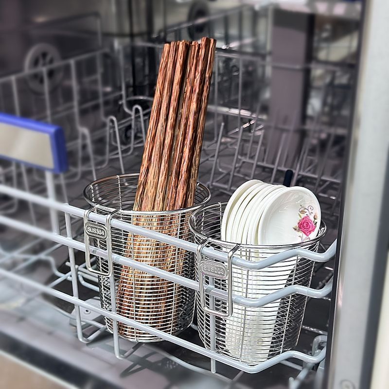 Grado alimenticio 304 palillos de acero inoxidable tipo ventilación colgada en la pared palillos caja de almacenamiento de drenaje marco especial para lavadora de platos