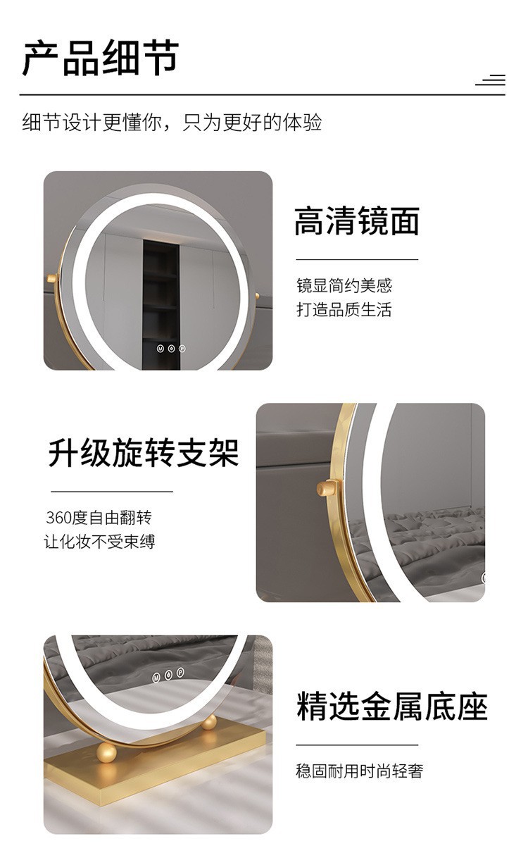 | Colores | Blanco 30cm de diámetro enchufable (girable) 3 tonos de luz,Negro 30cm de diámetro enchufable (girable) 3 tonos de luz,Dorado 30cm de diámetro enchufable (girable) 3 tonos de luz,Blanco 30cm diámetro recargable (girable) 3 tonos de luz,Negro 30cm diámetro recargable (girable) 3 tonos de luz,Oro 30cm diámetro recargable (girable) 3 tonos de luz,Blanco 40cm de diámetro enchufable (girable) 3 tonos de luz,Negro 40cm de diámetro enchufable (girable) 3 tonos de luz,Dorado 40cm de diámetro enchufable (giratorio) 3 tonos de luz,Blanco 40cm diámetro recargable (girable) 3 tonos de luz,Negro 40cm diámetro recargable (girable) 3 tonos de luz,Oro 40cm diámetro recargable (girable) 3 tonos de luz,Blanco 50cm de diámetro enchufable (girable) 3 tonos de luz,Negro 50cm de diámetro enchufable (girable) 3 tonos de luz,Dorado 50cm de diámetro enchufable (girable) 3 tonos de luz,Blanco 50cm diámetro recargable (girable) 3 tonos de luz,Negro 50cm diámetro recargable (girable) 3 tonos de luz,Oro 50cm diámetro recargable (girable) 3 tonos de luz,Espejo blanco de 30cm de diámetro sin lámpara HD (giratorio),Negro 30cm de diámetro sin lámpara HD espejo (giratorio),Espejo HD sin lámpara de 30cm de diámetro dorado (giratorio),Espejo blanco 40cm de diámetro sin lámpara HD (giratorio),Negro 40cm de diámetro sin lámpara HD espejo (giratorio),Espejo HD sin lámpara de 40cm de diámetro dorado (giratorio),Espejo blanco de 50cm de diámetro sin lámpara HD (giratorio),Negro 50cm de diámetro sin lámpara HD espejo (giratorio),Espejo de alta definición sin lámpara de 50cm de diámetro dorado (giratorio) |