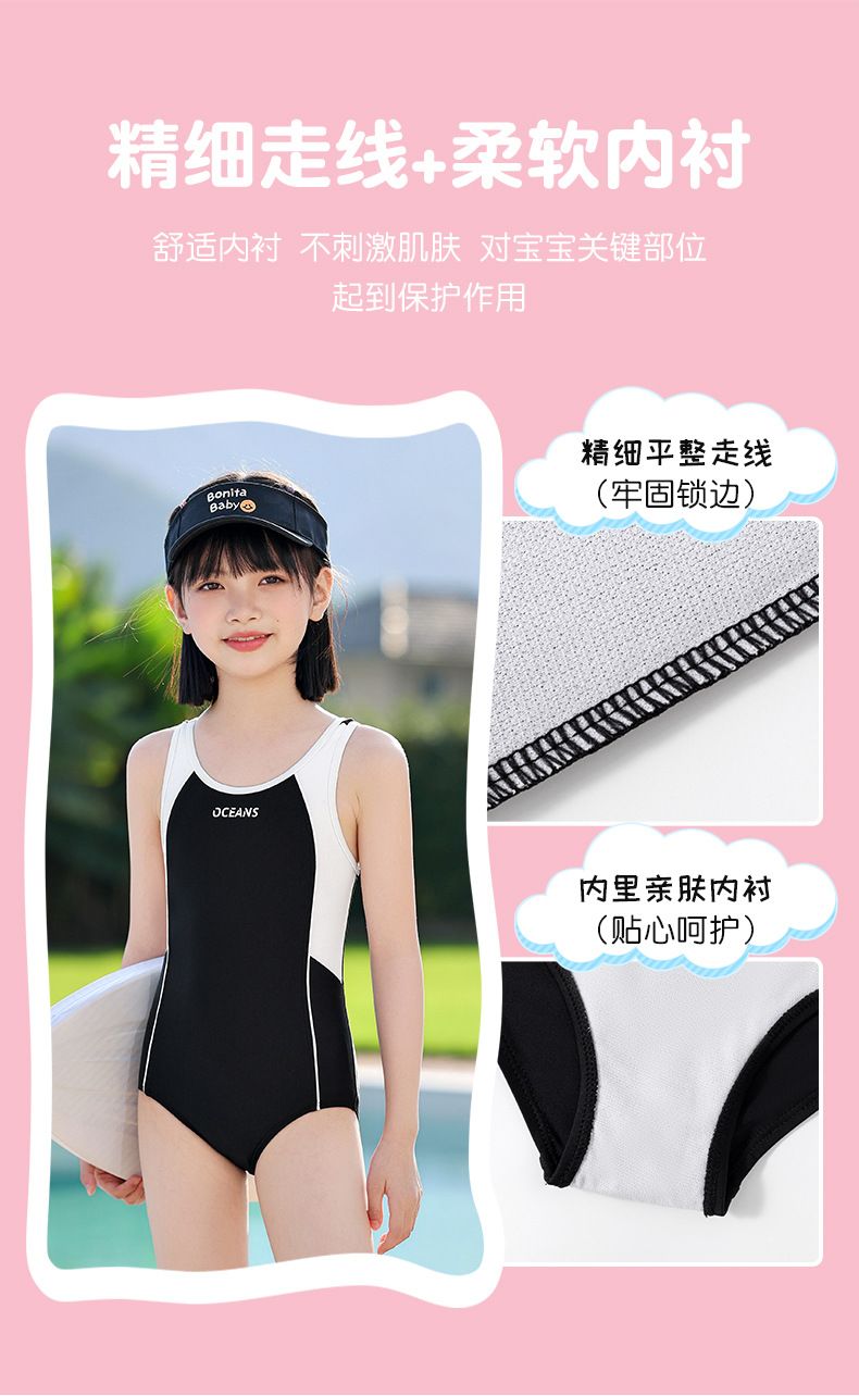 Traje de baño de una pieza para niños, traje de baño de entrenamiento profesional para niñas, estudiantes de secundaria, traje de baño conservador con almohadilla para el pecho para niñas