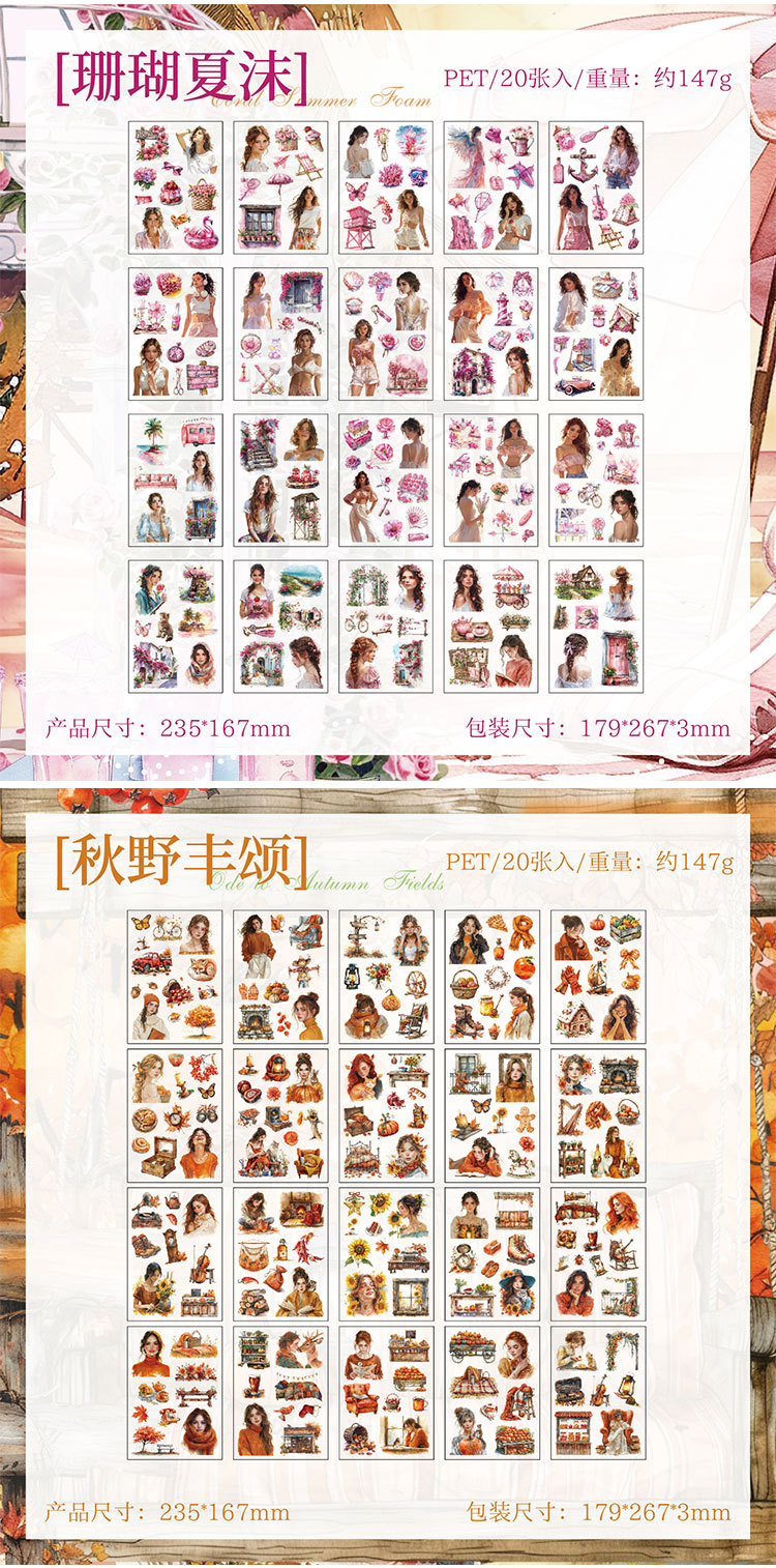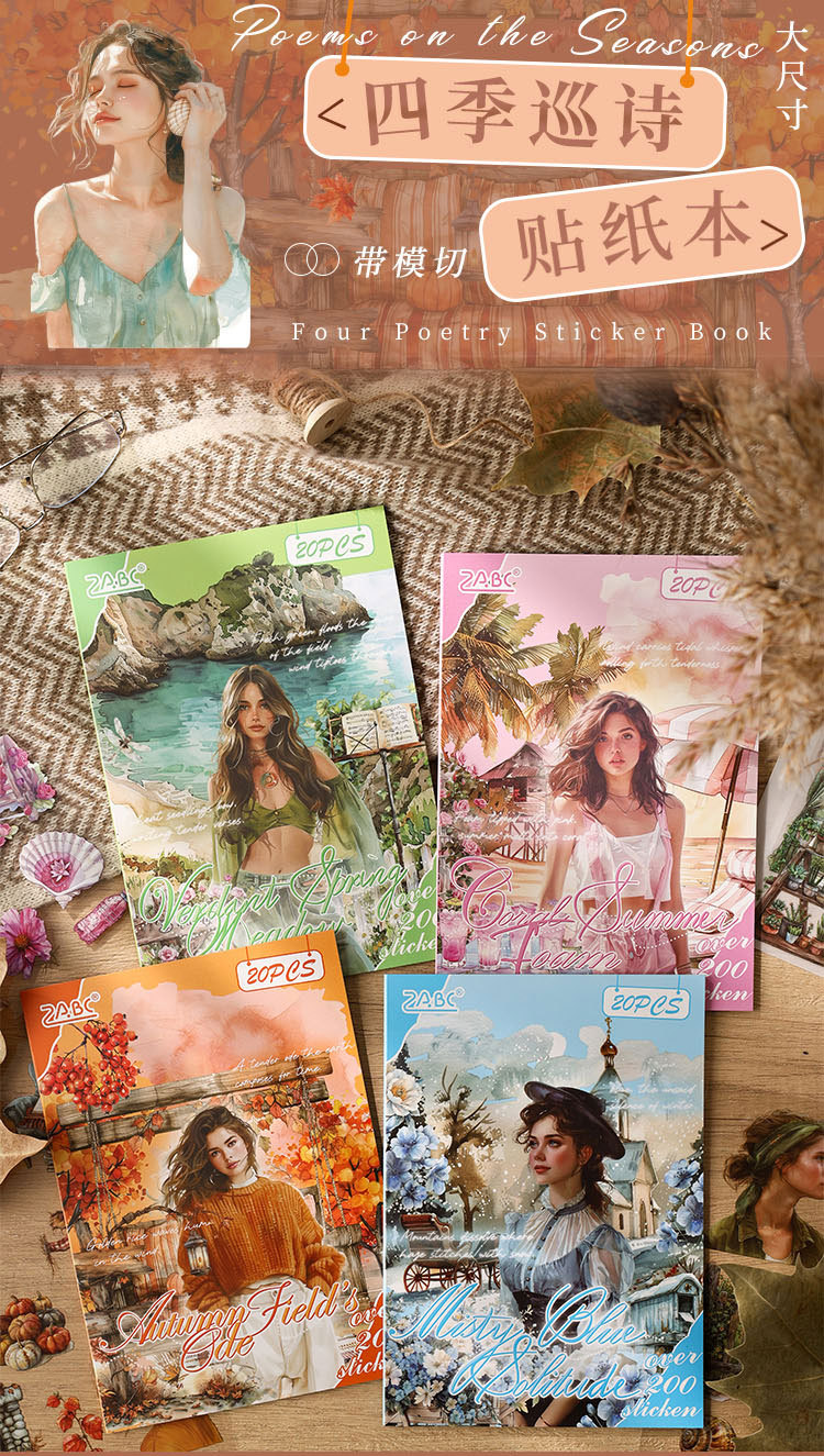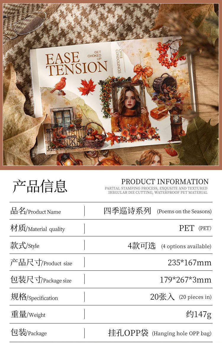 Yue Zhen cuatro estaciones patrulla de poesía cortar pegatinas de película pegatinas de libro pegatinas transfronterizas pegatinas para niños pegatinas de libro pegatinas de libro de mascotas