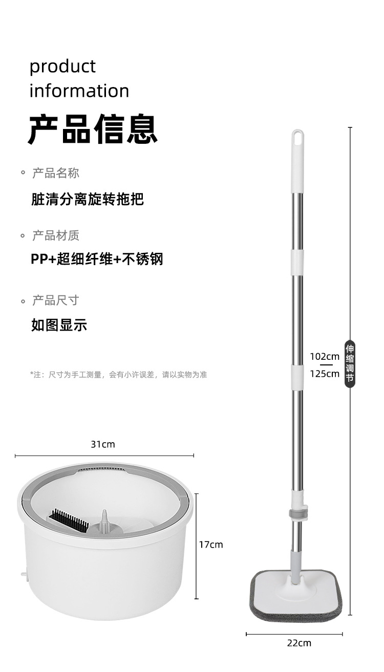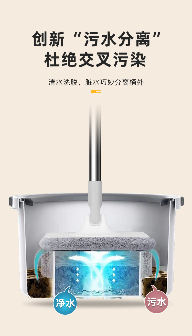 Barril de trapeador giratorio doméstico perezoso absorción de agua arrojada limpia separación de aguas residuales sin lavado a mano trapeador plano de barril único lote de trapeador