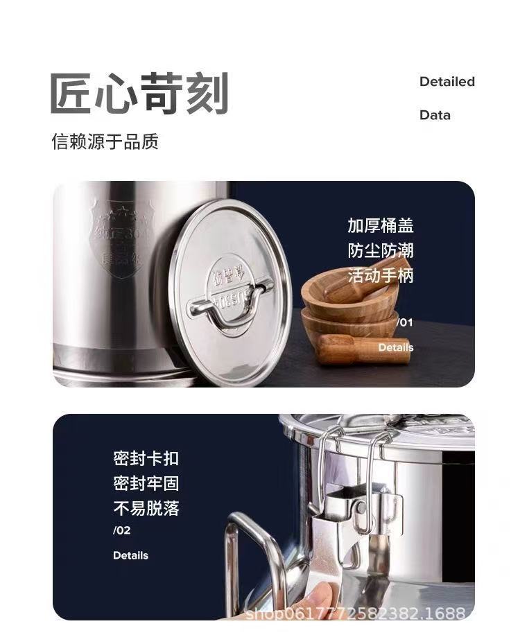 304 Cubo de arroz sellado de acero inoxidable engrosado Cubo de sopa multiusos Cubo de aceite doméstico Cubo de vino frasco de almacenamiento de arroz