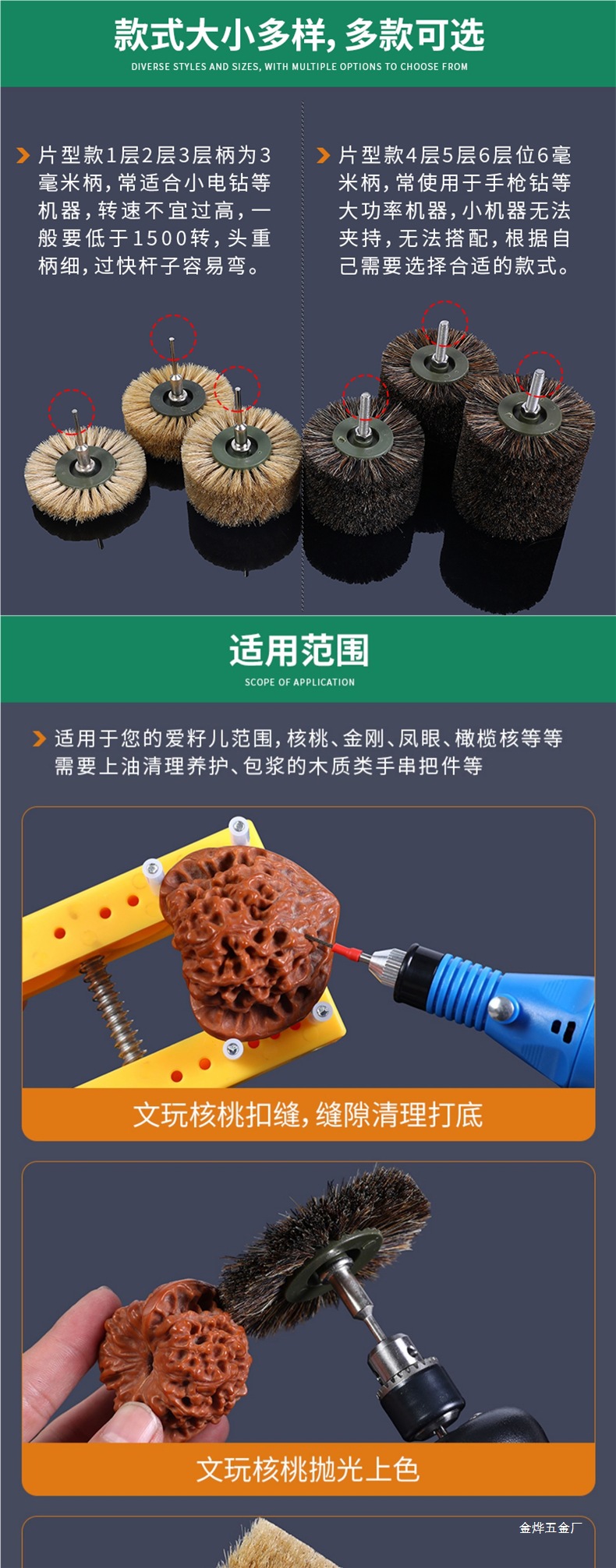 | Modelo de especificación | Tipo de hoja de 1 capa [3 materiales 1 cada uno] [3 asas],Tipo de 2 capas [3 materiales 1 cada uno] [3 asas],Tipo de hoja de 3 capas [3 materiales 1 cada uno] [3 asas],Tipo de película de 4 capas [3 materiales 1 cada uno] [6 asas],Tipo de 5 capas [3 materiales 1 cada uno] [6 asas],Tipo de hoja de 6 capas [3 materiales 1 cada uno] [6 asas],Disco de 35mm [3 materiales 1 cada uno] [3 asas],Alicates fijos de nuez 1,Enanchamiento de melena negra de 70mm 1 capa [3 asas],2 capas de melena negra ensanchada de 70mm [3 asas],3 capas de melena negra ensanchada de 70mm [3 asas],4 capas de melena negra ensanchada de 70mm [6 asas],Enganche la melena negra de 70mm 5 capas [6 asas],6 capas de melena negra ensanchada de 70mm [6 asas],Ensanche 1 capa de melena amarilla de 70mm [3 asas],Ensanche 2 capas de melena amarilla de 70mm [3 asas],3 capas de melena amarilla ensanchada de 70mm [3 asas],4 capas de melena amarilla ensanchada de 70mm [6 asas],Enanchamiento de melena amarilla de 70mm 5 capas [6 asas],6 capas de melena amarilla ensanchada de 70mm [6 asas],Enanchado 78mm suave nano 1 capa [3 vástago],Enanchado 78mm suave nano 2 capas [3 vástago],Ensanche 78mm suave nano 3 capas [3 vástago],Enanchamiento de capa de 4 nano blando de 78mm [6 vástago],Enanchado 78mm suave nano 5 capas [6 vástago],Enanchamiento de 78mm suave nano 6 capas [6 vástago],Ensanche 78mm dura nano 1 capa [3 vástago],Enanchamiento de 78mm dura nano 2 capas [3 vástago],Enanchamiento de 78mm dura nano 3 capas [3 vástago],Enanchamiento de 4 capas de nanómetros duros de 78mm [6 vástago],Enanchamiento de 78mm dura nano 5 capas [6 vástago],Enanchamiento de 76mm dura nano 6 capas [6 vástago],Ampliación de 65mm de lana suave 1 capa [3 asas],Ampliación de 65mm de lana suave 2 capas [3 asas],Ampliación de 65mm de lana blanda 3 capas [3 asas],Ancho 65mm de lana suave 4 capas [6 asas],Ampliación de 65mm de lana suave 5 capas [6 asas],Ampliación de 65mm de lana suave 6 capas [6 asas],[10 piezas] melena negra ensanchada de 70mm,[10 piezas] melena amarilla ensanchada de 70mm,[10 piezas] ensanchado 78mm nano suave,[10 piezas] Ancho 78mm duro nano,[10 piezas] Ancho 65mm de lana suave,Melena negra de disco de 35mm [3 asas],Melena amarilla de disco de 35mm [3 asas],Nano filamento de disco de 35mm [3 vástago],Disco de 35mm de lana suave [3 asas],Disco de 35mm de lana dura [3 asas],[Coser] 5 alambres de acero duro con cabezal de cepillo fino [2.35 mango],[Coser] 5 alambres de acero suaves con cabezal de cepillo fino [2.35 vástago],[Coser] Cabeza de cepillo fino 5 nano duro [2.35 vástago],[Cabeza de cepillo pequeña] 5 tipos de bolígrafos de alambre [2.35 vástago],[Cabeza de cepillo pequeña] 5 tipos de cuenco de alambre de acero [mango 2.35],[Cabeza de cepillo pequeña] 5 alambres de acero en forma de T [mango 2.35],[Cabeza de cepillo pequeño] 5 bolígrafos de melena negra [2.35 mango],[Cabeza de cepillo pequeño] 5 tipos de cuenco de melena negra [mango 2.35],[Cabeza de cepillo pequeño] melena negra tipo T 5 [mango 2.35],[Cabezal de cepillo pequeño] 5 bolígrafos de melena amarilla [2.35 mango],[Cabezal de cepillo pequeño] 5 tipos de cuenco de melena amarilla [mango 2.35],[Cabezal de cepillo pequeño] 5 cerdas amarillas en forma de T [mango 2.35],[Cabeza de cepillo pequeña] 5 millones de tipos de pincel [2.35 mango],[Cabeza de cepillo pequeña] 5 tipos de cuenco de diez mil cabellos [mango 2.35],[Cabeza de cepillo pequeña] 5 tipos de T de diez mil cabellos [mango 2.35],Cinta de pulido Wanmao [3 piezas],Cinta de pulido Wanmao [3] Cabeza de cepillo de seda DuPont [1],Cinta de pulido con patrón de piña [3],Cinturón de pulido con patrón de piña 3 cabezales de cepillo de seda DuPont [1] |