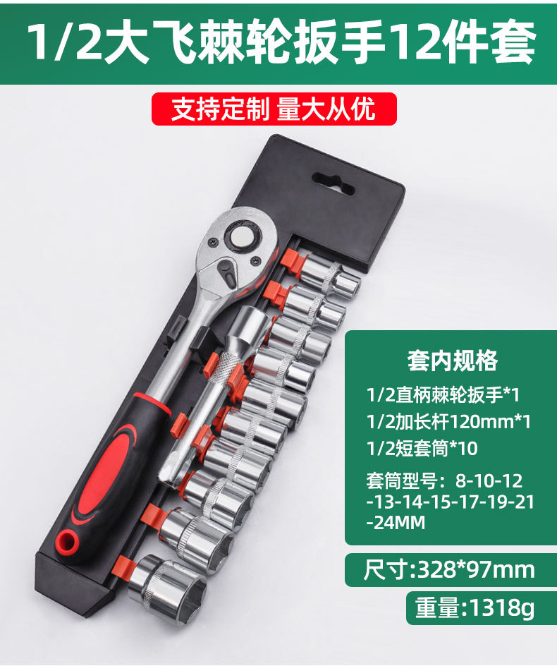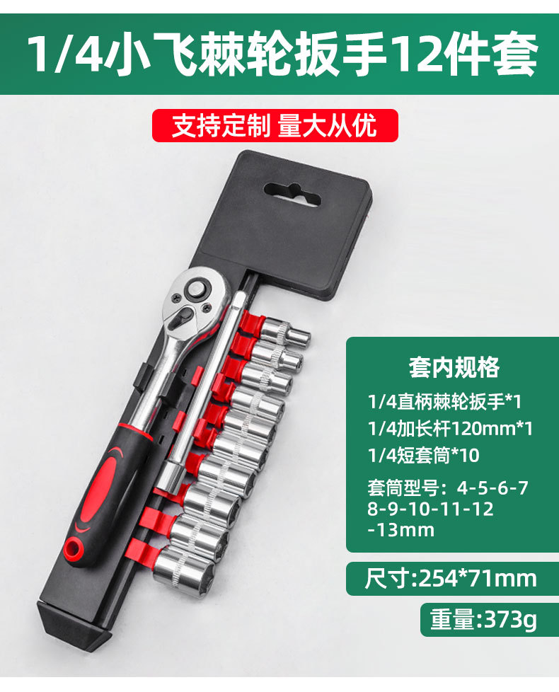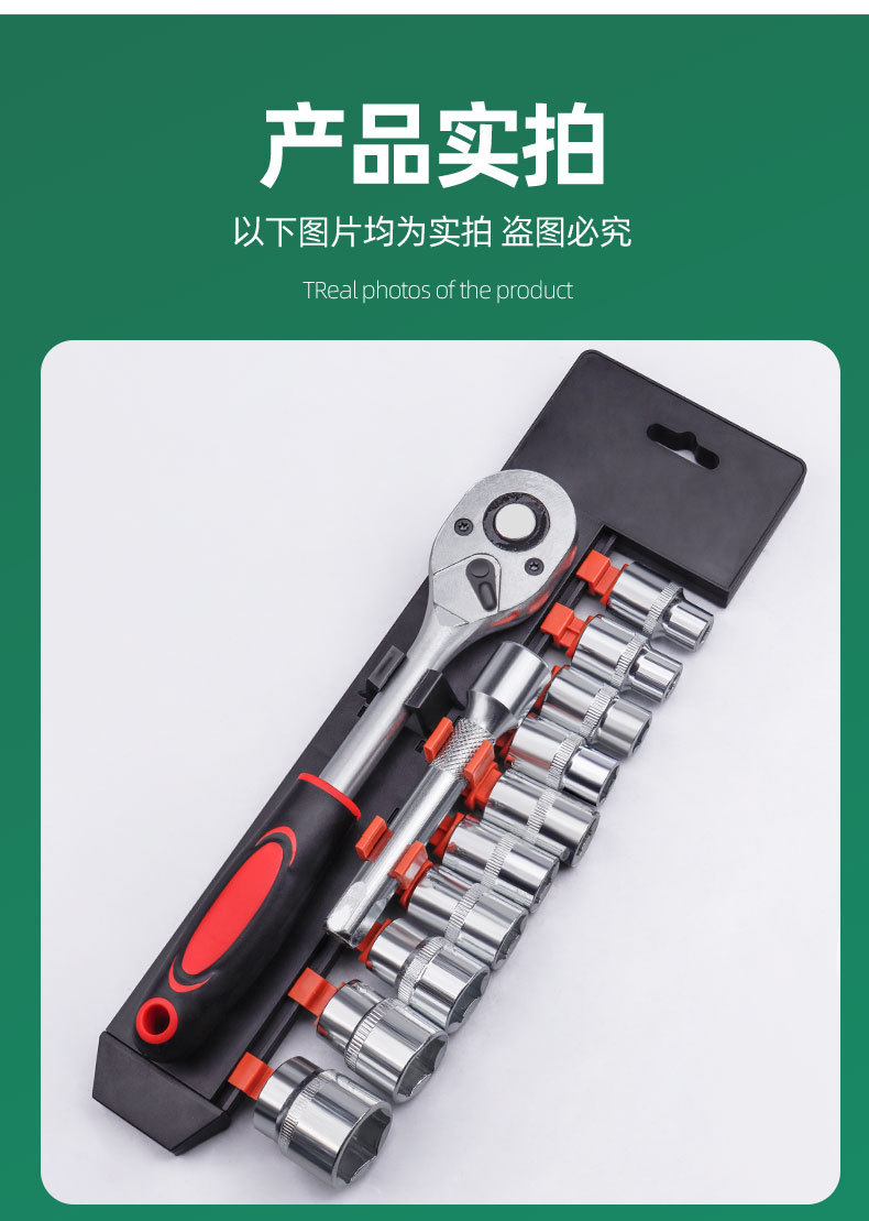 manguito de trinquete rápido de grado industrial 12 piezas de proceso de enfriamiento conjunto de herramientas de mantenimiento de automóviles y motocicletas de alto par