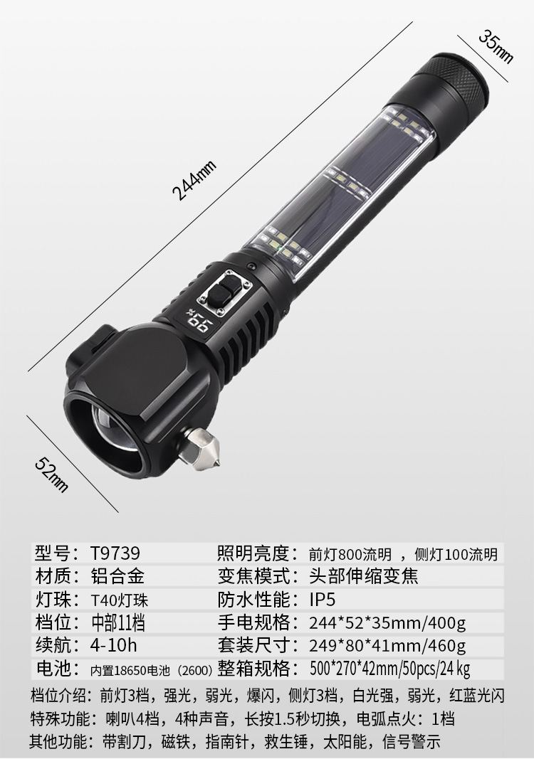 Multifuncional linterna solar con dispositivo de miel encendedor cigarrillos al aire libre actualizado coche emergencia luz fuerte carga