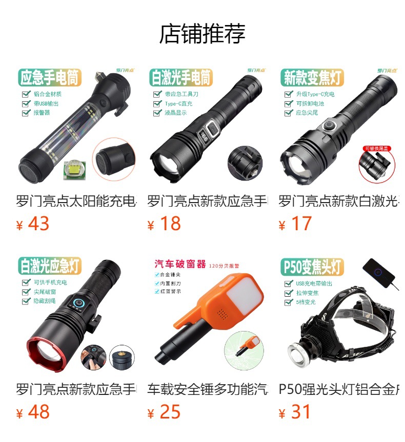 Transfronterizo nueva linterna de luz fuerte mini portátil de largo alcance láser LED Super brillante P50 recargable tipo-c zoom