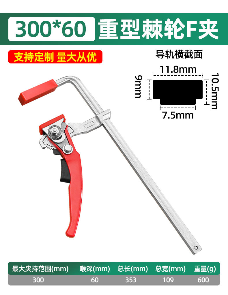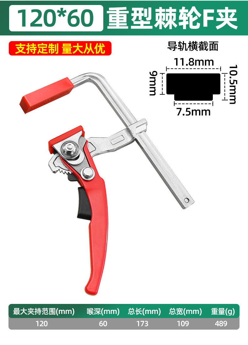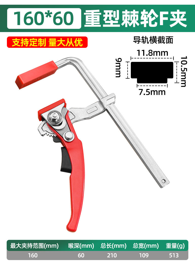 Cadena de trinquete de cabeza cuadrada rápida F-clamp fijación especial de empalme de carpintería almohadilla antideslizante anti-daño ahorro de mano de obra herramienta de sujeción de alta eficiencia