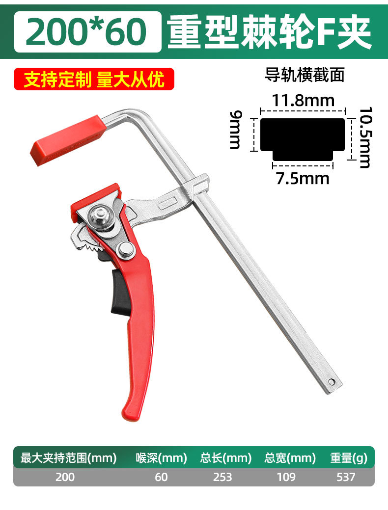2029, clip F de trinquete pesado 160 * 60, 0513 kg, 2030, clip F de trinquete pesado 200 * 60, 0537 kg, 2031, clip F de trinquete pesado 300 * 60,0,6 kg