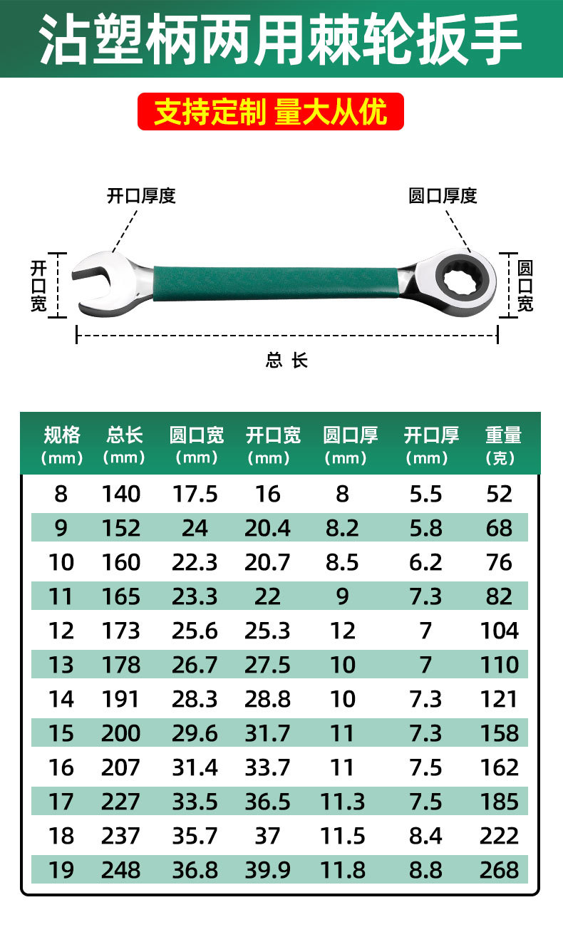 | Especificaciones y modelos | 1864, enganche de doble propósito de mango de plástico 8 #, 0.052kg, 1865, enganche de doble propósito de mango de plástico 9 #, 0.068kg, 1866, enganche de doble propósito de mango de plástico 10 #, 0.076kg, 1867, enganche de doble propósito de mango de plástico 11 #, 0.082kg, 1868, enganche de doble propósito de mango de plástico 12 #, 0.104kg, 1869, enganche de doble propósito de mango de plástico 13 #, 0.110kg, 1870 enganche de doble propósito de mango de plástico 14 #, 0.121kg, 1871, enganche de doble propósito 15 #, 0.158kg, 1872, enganche de doble propósito 16 #, 0.162kg, 1873, enganche de doble propósito 17 #, 0.185kg, 1874, enganche de doble propósito 18 #, 0.222kg, 1875, enganche de doble propósito 19 #, 0.268kg, |