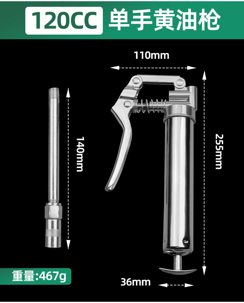 Fabricante al por mayor presión estable adecuada para el mantenimiento de maquinaria y equipos de reparación de automóviles 120cc pistola de mantequilla de mano única