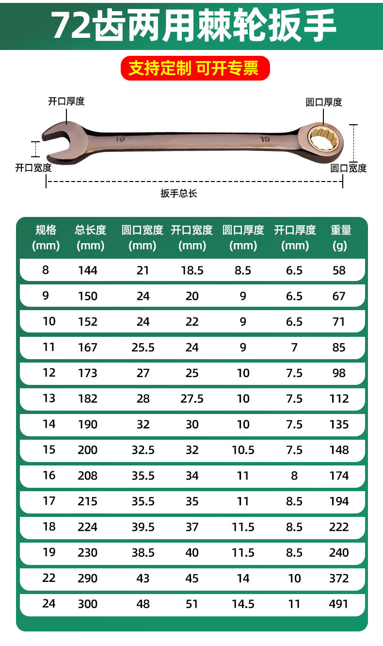| Modelo de especificación | 1065, llave de trinquete de doble propósito de níquel negro 8mm,0.06kg,1066, llave de trinquete de doble propósito de níquel negro 9mm, 0,07 kg,1067, Llave de trinquete de doble propósito de níquel negro 10mm,0.07kg,1068, llave de trinquete de doble uso de níquel negro 11mm, 0,09 kg,1069, llave de trinquete de doble uso de níquel negro 12mm,0.1kg,1070, llave de trinquete de doble uso de níquel negro 13mm, 0,11 kg,1071, llave de trinquete de doble uso de níquel negro 14mm, 0,14 kg,1072, llave de trinquete de doble uso de níquel negro 15mm, 0,15 kg,1073, llave de trinquete de doble uso de níquel negro 16mm, 0,17 kg,1074, llave de trinquete de doble uso de níquel negro 17mm, 0,19 kg,1075, llave de trinquete de doble uso de níquel negro 18mm, 0,22 kg,1076, llave de trinquete de doble uso de níquel negro 19mm, 0,24 kg,1077, llave de trinquete de doble uso de níquel negro 22mm, 0,37 kg,1078, llave de trinquete de doble uso de níquel negro 24mm, 0,49 kg |