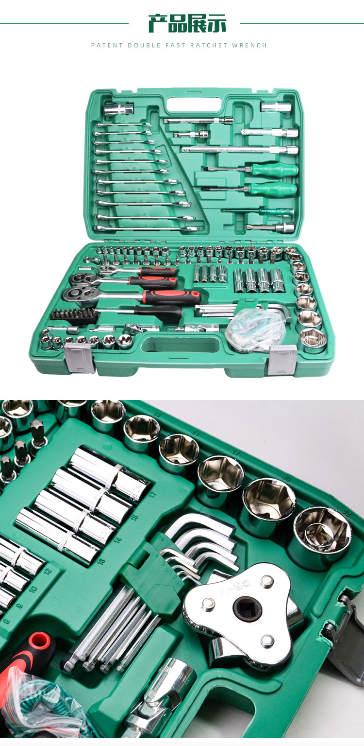 121-pieza de reparación de automóviles grandes, medianos y pequeños volando rápido Llave de trinquete llave de doble propósito biela manga herramienta traje