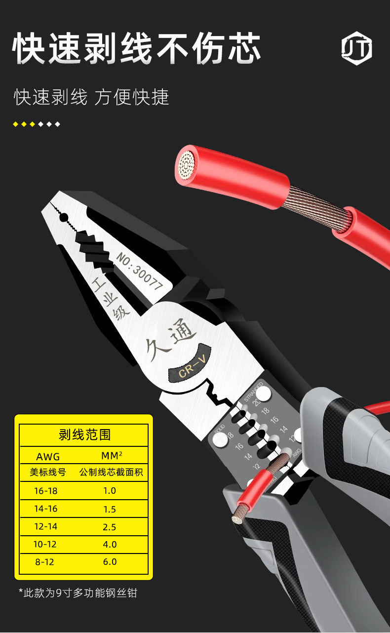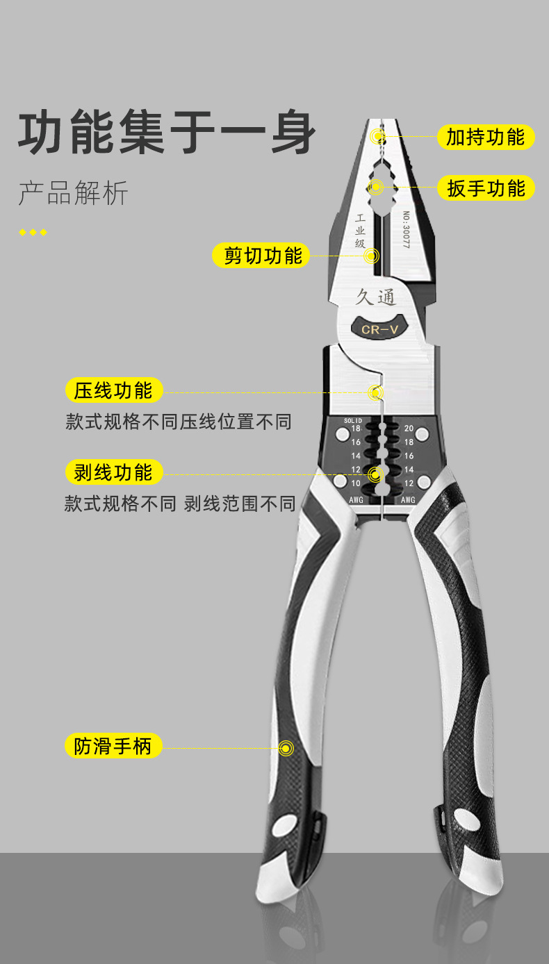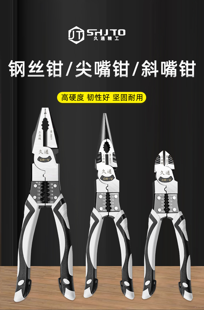 Alicates multifunción de venta caliente, alicates de alambre pelable, alicates de punta fina, alicates diagonales, herramientas de hardware
