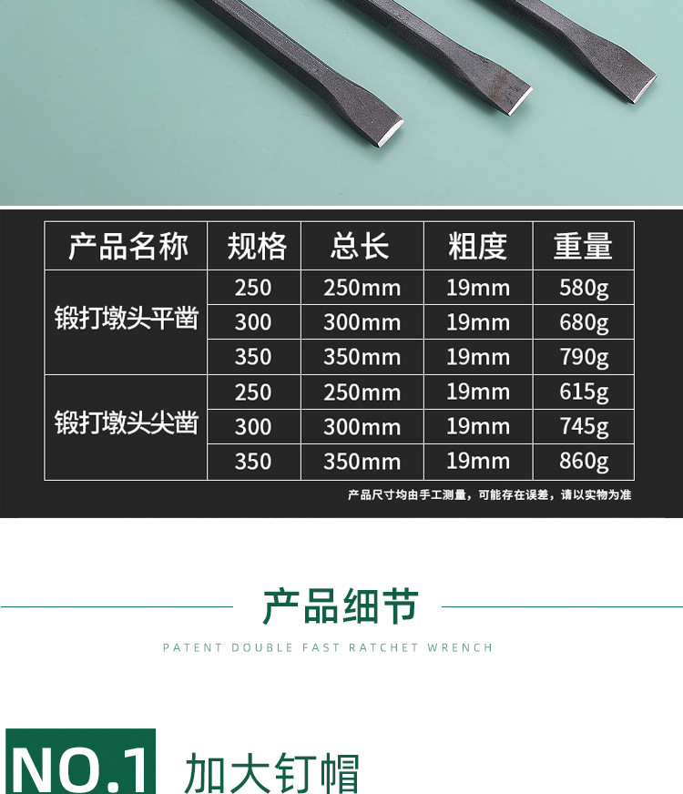 Fábrica al por mayor de herramientas de construcción de gran cabeza de la cúpula del cincel de punta plana de Arena verde Cincel de piedra del muelle