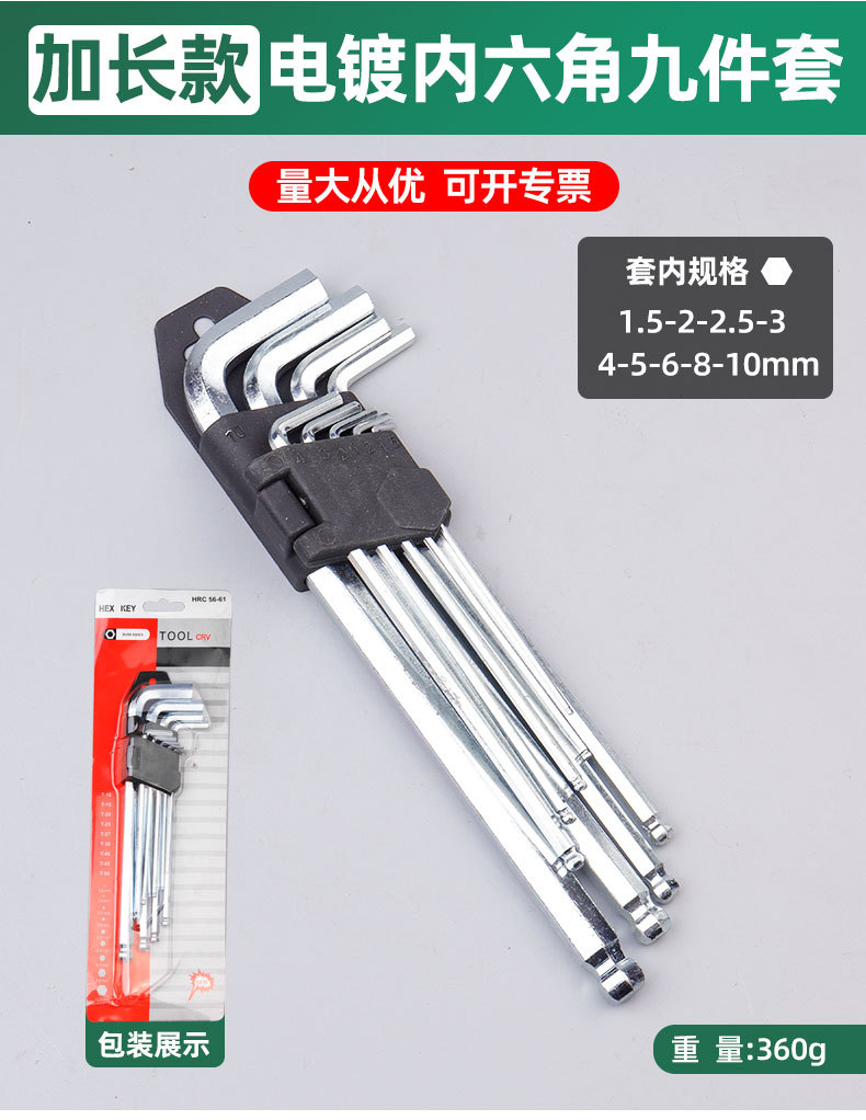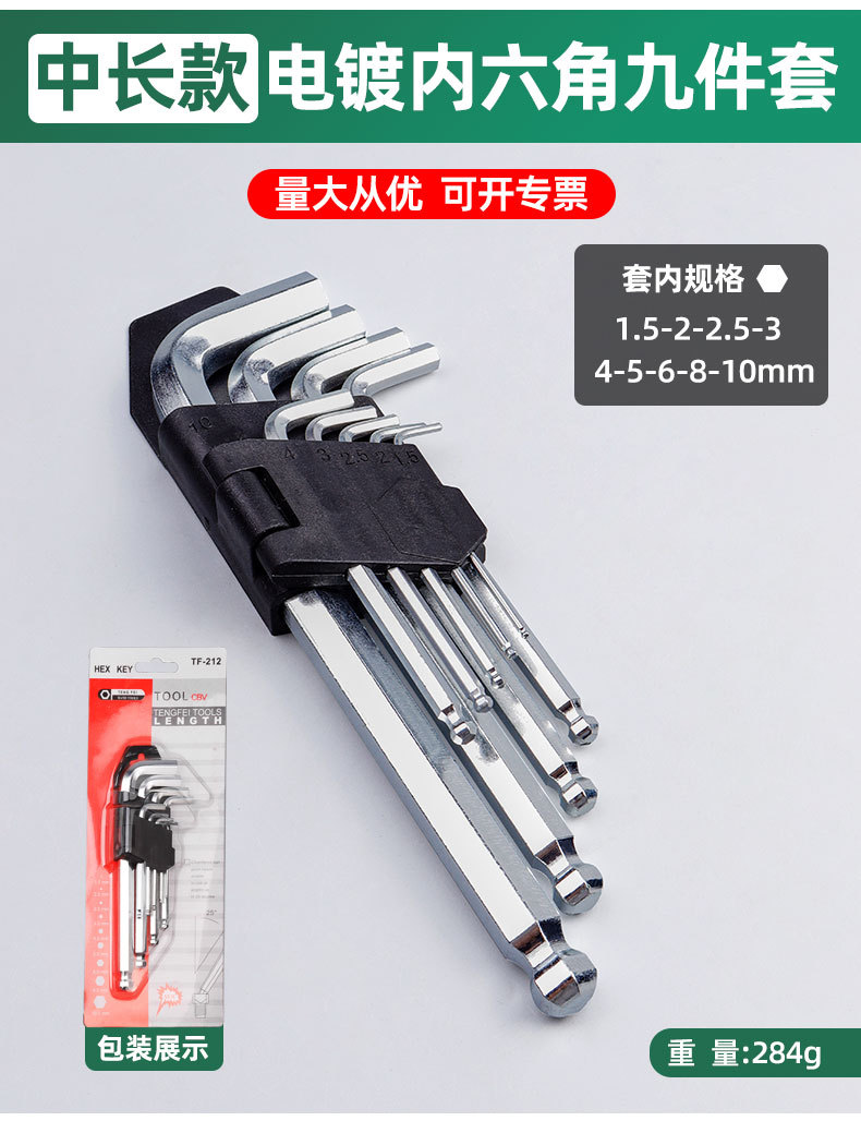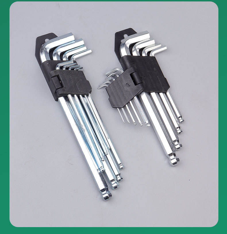 Venta al por mayor de fábrica de 9 piezas de cabeza de bola tarjeta llave hexagonal en forma de L placa combinación de mano traje herramientas de hardware