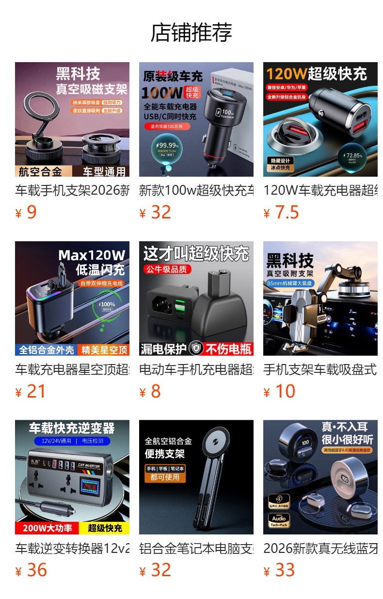 2、本店拥有车充、车载支架、车载停车牌、车载支架等产品