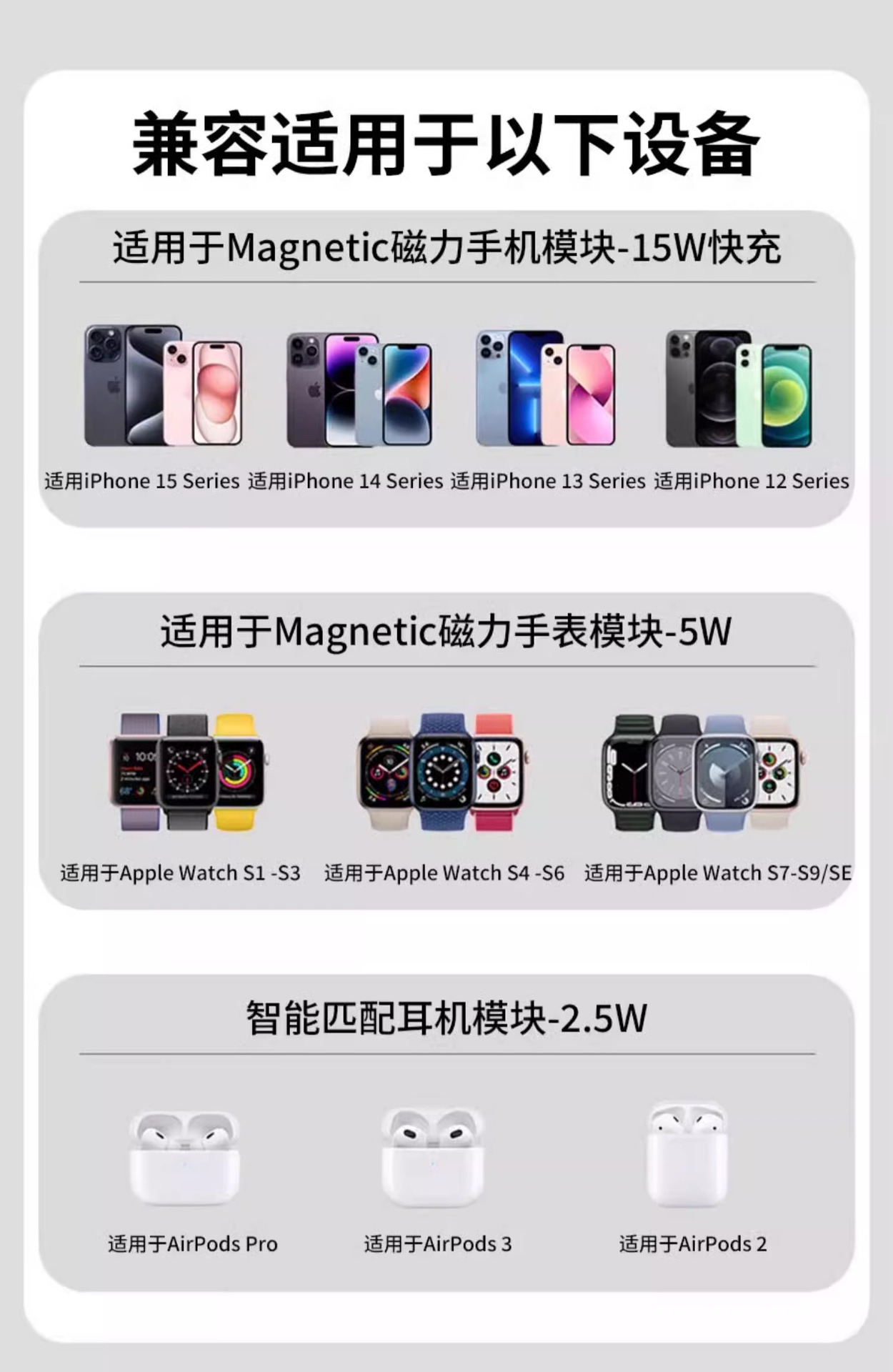 | Colores | Espacio profundo negro [estilo estándar] 3 en 1 segundo plegado★Carga rápida de 23W ◆ Teléfono móvil ◆ Reloj ◆ Auriculares,Haoyueubai [estilo estándar] 3 en 1 segundo plegado★Carga rápida de 23W ◆ Teléfono móvil ◆ Reloj ◆ Auriculares,[Carga inalámbrica 3 en 1 para teléfono móvil/reloj/auricular] Soporte de carga magnético★Plegable portátil-blanco,[Carga inalámbrica 3 en 1 para teléfono móvil/reloj/auricular] Soporte de carga magnético★Plegable portátil-negro,[Teléfono móvil/reloj/auricular cabezal de carga rápida de carga inalámbrica 3 en 1] soporte de carga magnética★Plegable portátil-blanco,[Teléfono móvil/reloj/auricular cabezal de carga rápida de carga inalámbrica 3 en 1] soporte de carga magnética★Plegable portátil-negro,Blanco magnético inalámbrico dos en uno [con línea de carga rápida Type-C],Inalámbrico magnético negro dos en uno [con cable de carga rápida Type-C],Blanco magnético inalámbrico dos en uno [con cable de carga rápida Tipo-C con cabezal de carga de 20W],Inalámbrico magnético negro dos en uno [con cabezal de carga de 20W de línea de carga rápida Tipo-C],Actualice la carga rápida [espejo blanco] ☆ Apagado inteligente ☆ seguro y sin dañar la máquina,Actualización de carga rápida [Mirror Black] ☆ Apagado inteligente ☆ Seguro y sin dañar la máquina,Actualización de carga rápida [cabezal de carga rápida blanca espejo] ☆ apagado inteligente ☆ seguro y sin dañar la máquina,Actualización de carga rápida [cabezal de carga rápida negro espejo] ☆ apagado inteligente ☆ seguro y sin dañar la máquina,[Elegante actualización negra] Carga rápida inalámbrica ☆ Solo admite teléfonos móviles con función de carga inalámbrica,[Actualización blanca simple] Carga rápida inalámbrica ☆ Solo admite teléfonos móviles con función de carga inalámbrica,[Elegante cabezal de carga súper rápido de actualización negra] Carga rápida inalámbrica ☆ Solo admite teléfonos móviles con función de carga inalámbrica,[Cabeza de carga súper rápida de actualización blanca simple] Carga rápida inalámbrica ☆ Solo admite teléfonos móviles con función de carga inalámbrica,Universal Universal ☆ [Carga magnética negra elegante] Soporte de carga inalámbrico,Universal Universal ☆ [Carga magnética blanca simple] Soporte de carga inalámbrico |