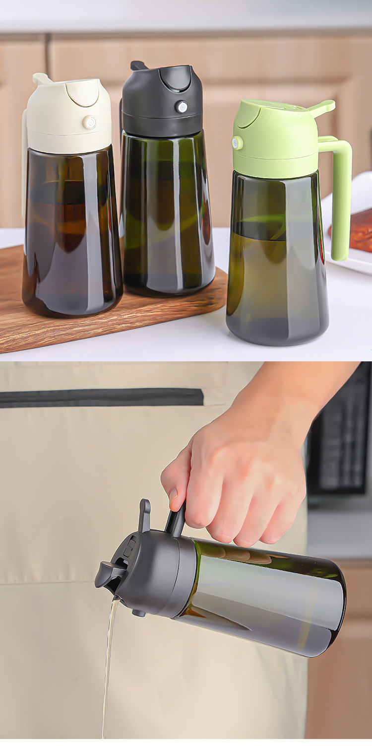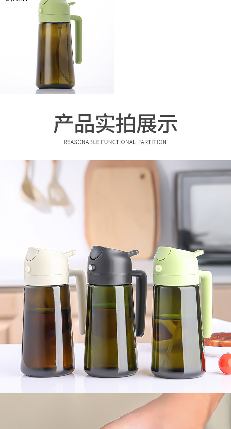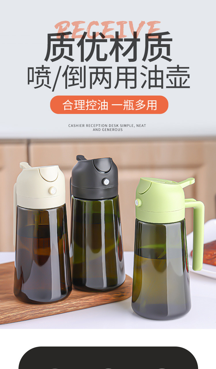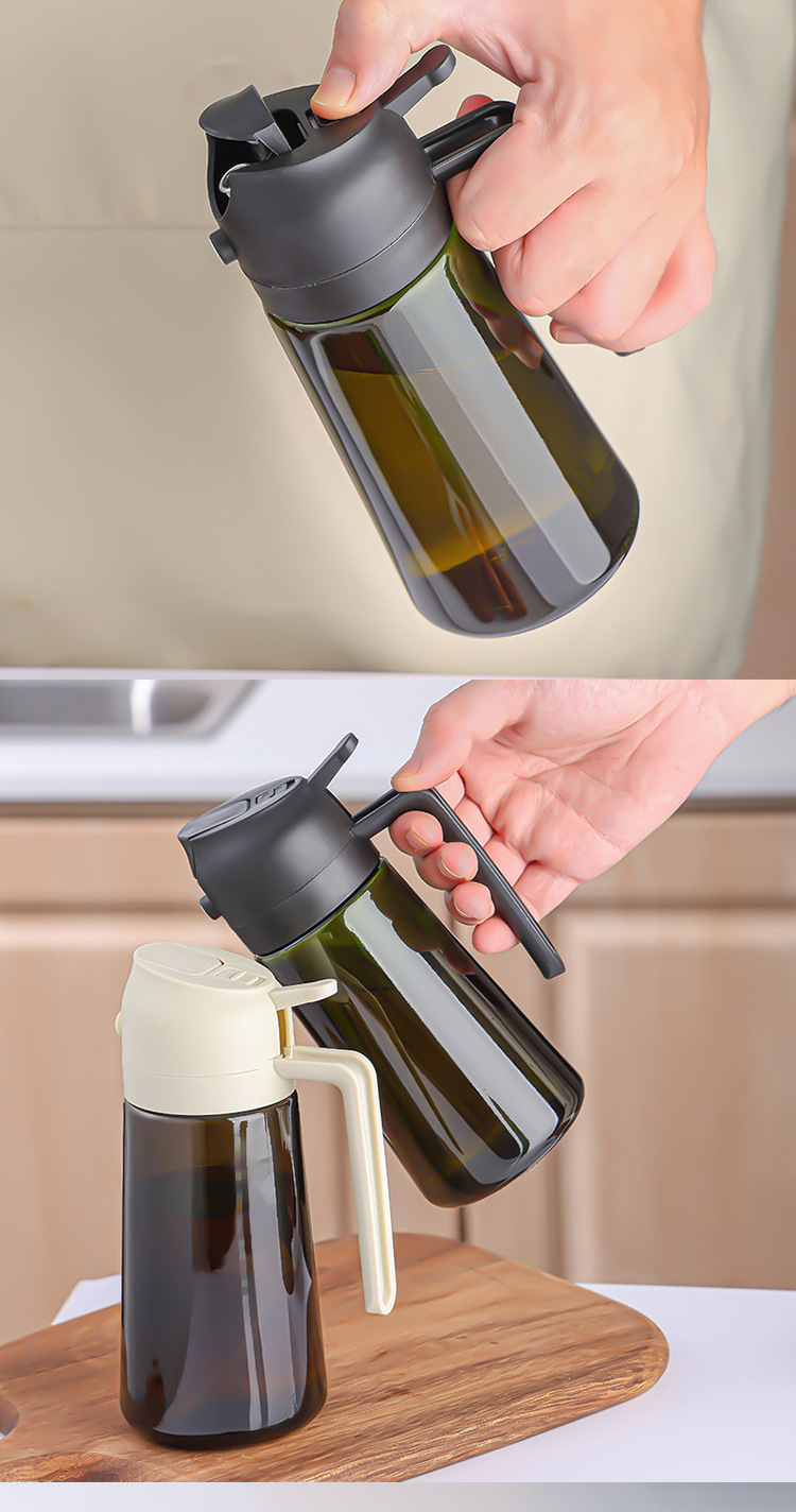 Nuevo pulverizador de aceite de vidrio a prueba de luz, pulverizador de aceite de cocina de doble propósito, botella de aceite de vidrio doméstica dos en uno de 470 ml