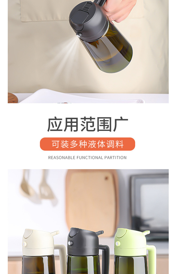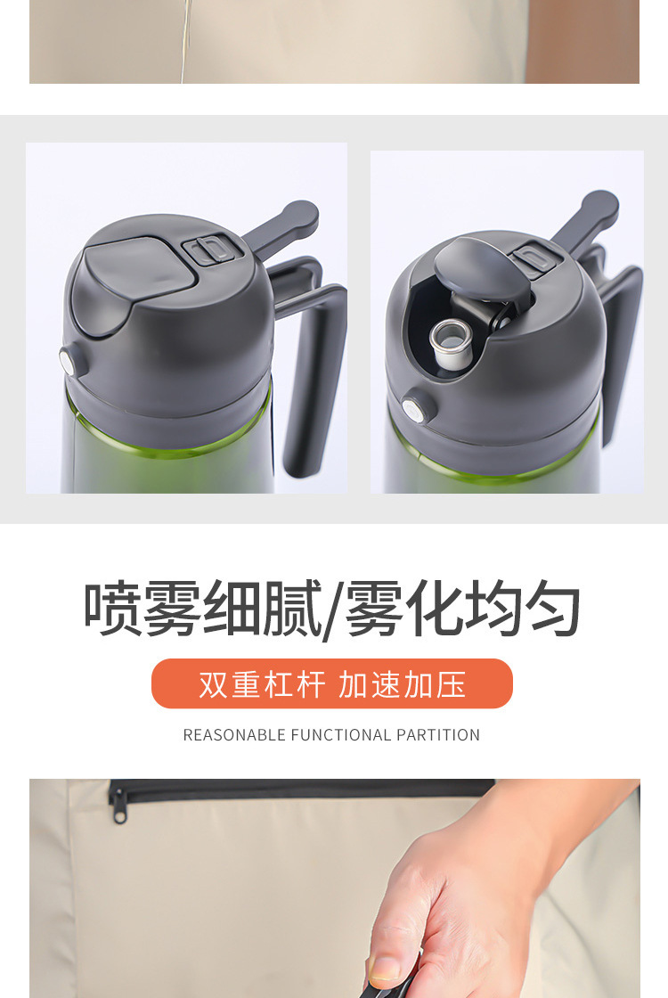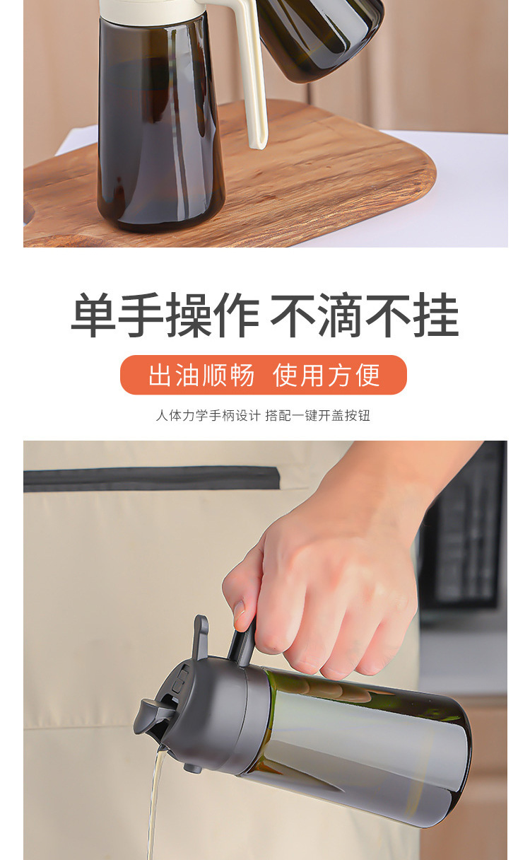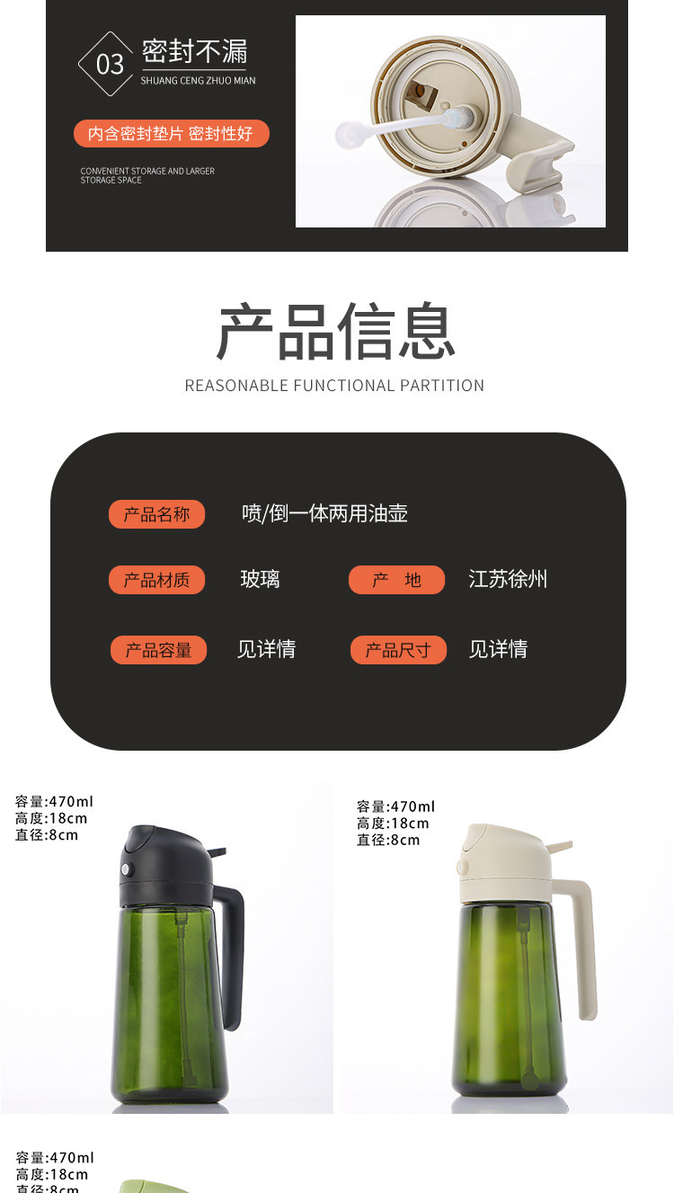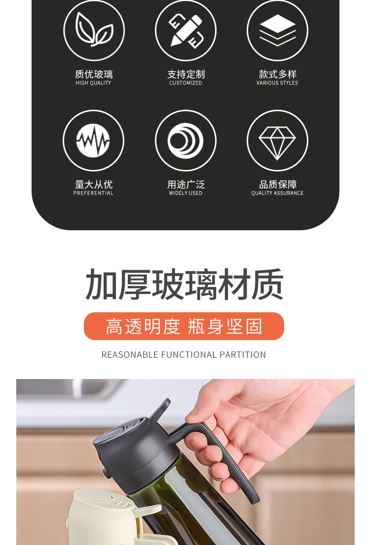Nuevo pulverizador de aceite de vidrio a prueba de luz, pulverizador de aceite de cocina de doble propósito, botella de aceite de vidrio doméstica dos en uno de 470 ml