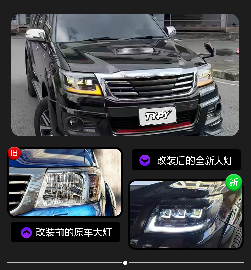 Aplicable a 12 - 14 modelos Toyota Hercules VIGO conjunto de faro modificado LED luz diurna luz de dirección de corriente