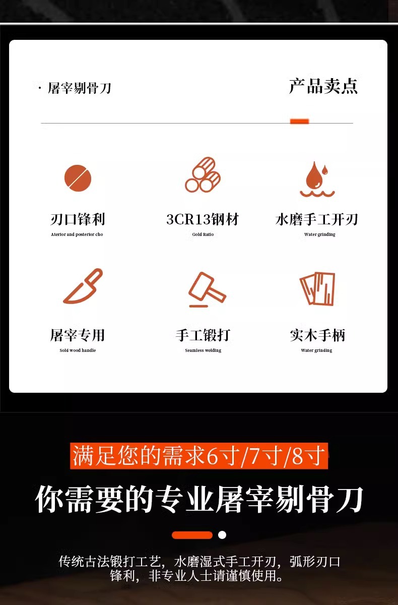 | Especificaciones y modelos | 六寸剔骨刀(二十年)-60°以上-17.5cm-12cm,七寸剔骨刀(二十年)-60°以上-17.5cm-12cm,八寸剔骨刀(二十年)-60°以上-17.5cm-12cm,蒙古小刀无刀套【单把】-60°以上-17.5cm-12cm,蒙古小刀带刀套【单把】-60°以上-17.5cm-12cm,锻打剔骨刀-60°以上-17.5cm-12cm,浅色款-锻打剔骨刀+厨房剪刀-60°以上-17.5cm-12cm,剔骨刀【送刀套】-60°以上-17.5cm-12cm,分割刀【送刀套】-60°以上-17.5cm-12cm,刮皮刀【送刀套】-60°以上-17.5cm-12cm,六寸剔骨刀+皮套(二十年)-60°以上-17.5cm-12cm,七寸剔骨刀+皮套(二十年)-60°以上-17.5cm-12cm,八寸剔骨刀+皮套(二十年)-60°以上-17.5cm-12cm,六寸剔骨刀+磨刀棒(二十年)-60°以上-17.5cm-12cm,七寸剔骨刀+磨刀棒(二十年)-60°以上-17.5cm-12cm,八寸剔骨刀+磨刀棒(二十年)-60°以上-17.5cm-12cm,六寸剔骨刀+皮套+磨刀棒(二十年)-60°以上-17.5cm-1,七寸剔骨刀+皮套+磨刀棒(二十年)-60°以上-17.5cm-1,八寸剔骨刀+皮套+磨刀棒(二十年)-60°以上-17.5cm-1,小号全钢剔骨刀-60°以上-17.5cm-12cm,大号全钢剔骨刀-60°以上-17.5cm-12cm,小号全钢剔骨刀+刀套-60°以上-17.5cm-12cm,大号全钢剔骨刀+刀套-60°以上-17.5cm-12cm,屠宰弯刀-60°以上-17.5cm-12cm,屠宰弯刀+磨刀棒-60°以上-17.5cm-12cm,蒙古手把刀+刀套-60°以上-17.5cm-12cm,马蹄柄黑钢水果刀-赠刀套-60°以上-17.5cm-12cm,马蹄柄黑钢厨师刀-赠刀套-60°以上-17.5cm-12cm,1把【无刀套】圆木柄夹刚小手刀-60°以上-17.5cm-12cm,1把【带刀套】圆木柄夹刚小手刀-60°以上-17.5cm-12cm,2把【无刀套】圆木柄夹刚小手刀-60°以上-17.5cm-12cm,2把【带刀套】圆木柄夹刚小手刀-60°以上-17.5cm-12cm,5把【无刀套】圆木柄夹刚小手刀-60°以上-17.5cm-12cm,5把【带刀套】圆木柄夹刚小手刀-60°以上-17.5cm-12cm,锻打剔骨刀+磨刀棒-60°以上-17.5cm-12cm,锻打剔骨刀+竹砧板-60°以上-17.5cm-12cm,锻打剔骨刀+磨刀石-60°以上-17.5cm-12cm,浅色款-锻打剔骨刀【不锋利】-60°以上-17.5cm-12cm,锻打剔骨刀+厨房剪刀-60°以上-17.5cm-12cm,浅色款-锻打剔骨刀+磨刀棒-60°以上-17.5cm-12cm,浅色款-锻打剔骨刀+竹砧板-60°以上-17.5cm-12cm,浅色款-锻打剔骨刀+磨刀石-60°以上-17.5cm-12cm,分割刀+剔骨刀【送刀套】-60°以上-17.5cm-12cm,_刮皮刀+剔骨刀【送刀套】-60°以上-17.5cm-12cm,刮皮刀+分割刀【送刀套】-60°以上-17.5cm-12cm,刮皮刀+分割刀+剔骨刀【送刀套】-60°以上-17.5cm-12c |