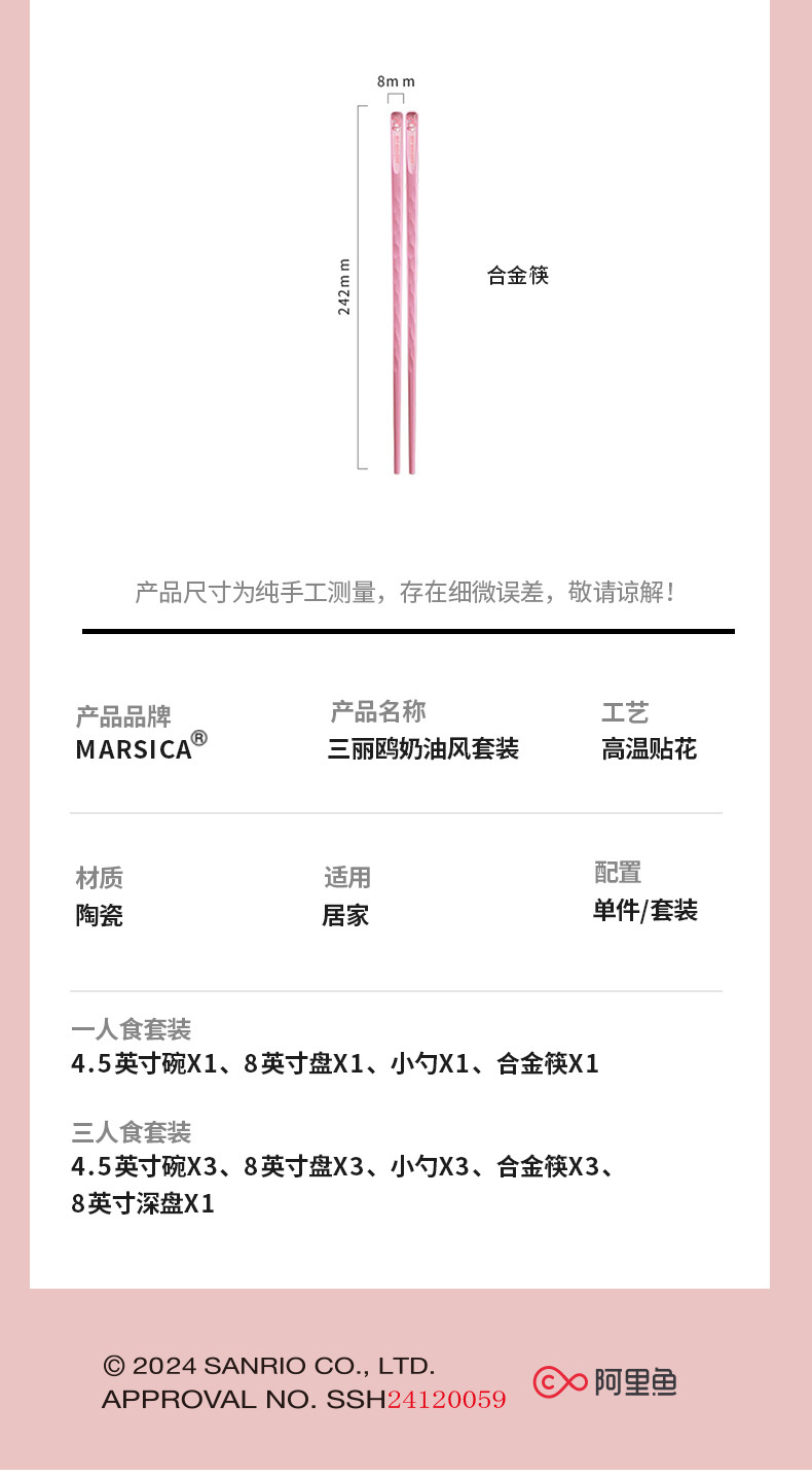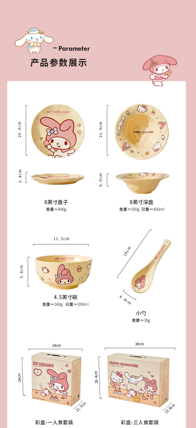 | Colores | Juego de 4 piezas de crema para una persona-Mele,Crema de 4 piezas de comida para una persona-Hello Kitty,Juego de 4 piezas de crema para una persona-perro de orejas grandes,Menú crema para tres personas - Set de 13 piezas [tamaño familiar],【Plato - 8 pulgadas】My Melody,[Plato-8 pulgadas] Hello Kitty,【Plato de 8 pulgadas】Perro de orejas grandes,【Plato hondo - 8 pulgadas】Combo Sanrio,[Tazón - 4.5 pulgadas] Melody,[Tazón de 4,5 pulgadas] Hello Kitty,[Tazón - 4.5 pulgadas] Perro de orejas grandes,Cuchara pequeña-Melodía,Cuchara pequeña - Hello Kitty,Perro de orejas grandes y cuchara pequeña,Palillos de aleación-Melodía,Palillos de aleación - Hello Kitty,Palillos de aleación: perro de orejas grandes |