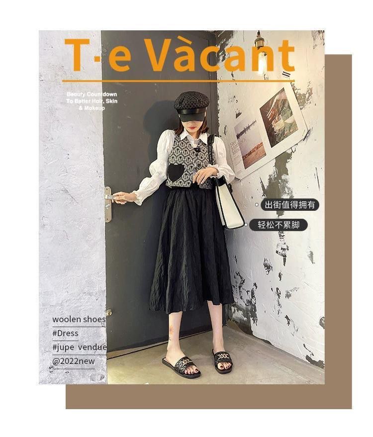 Chica mansión ~ Verano nuevo estilo francés elegante retro plataforma de una sola palabra pantuflas de punta abierta de verano para mujer