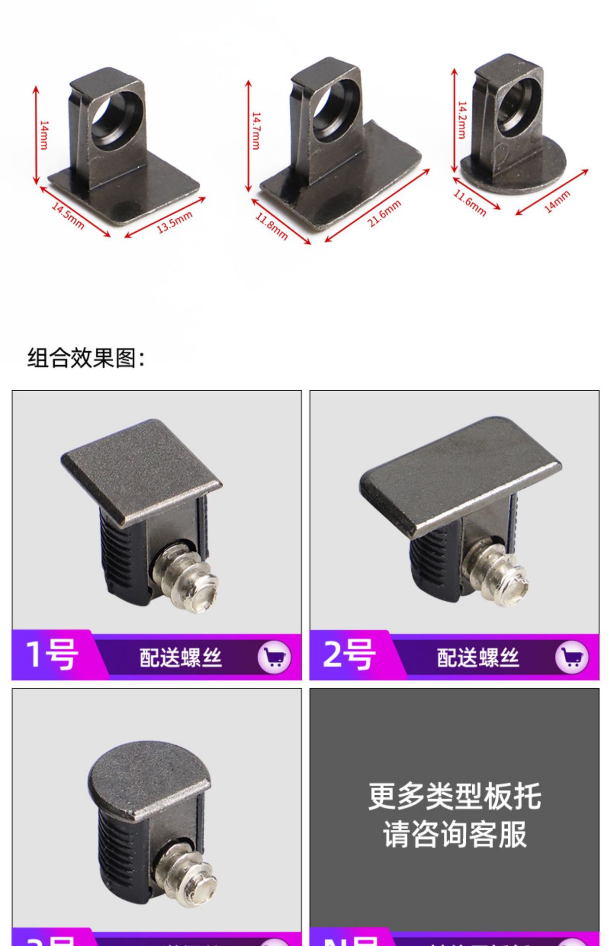 | Especificaciones | Semicircular [negro de pistola], cuadrado [negro de pistola], rectangular [negro de pistola], soporte de placa 3 - en - 1 [blanco], soporte de placa 3 - en - 1 [marrón], soporte de placa 3 - en - 1 [aleación], soporte de placa 2 - en - 1 [blanco], soporte de placa 2 - en - 1 [marrón], tornillo de placa de cabeza plana de 12 mm, tornillo de placa de máquina de 16 mm |