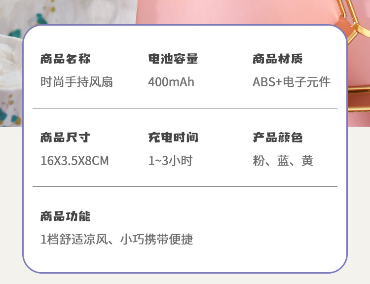 | Nombre | Mini ventilador portátil de carga USB |