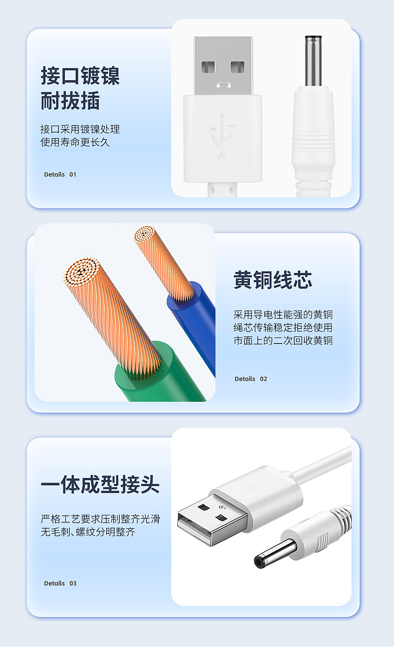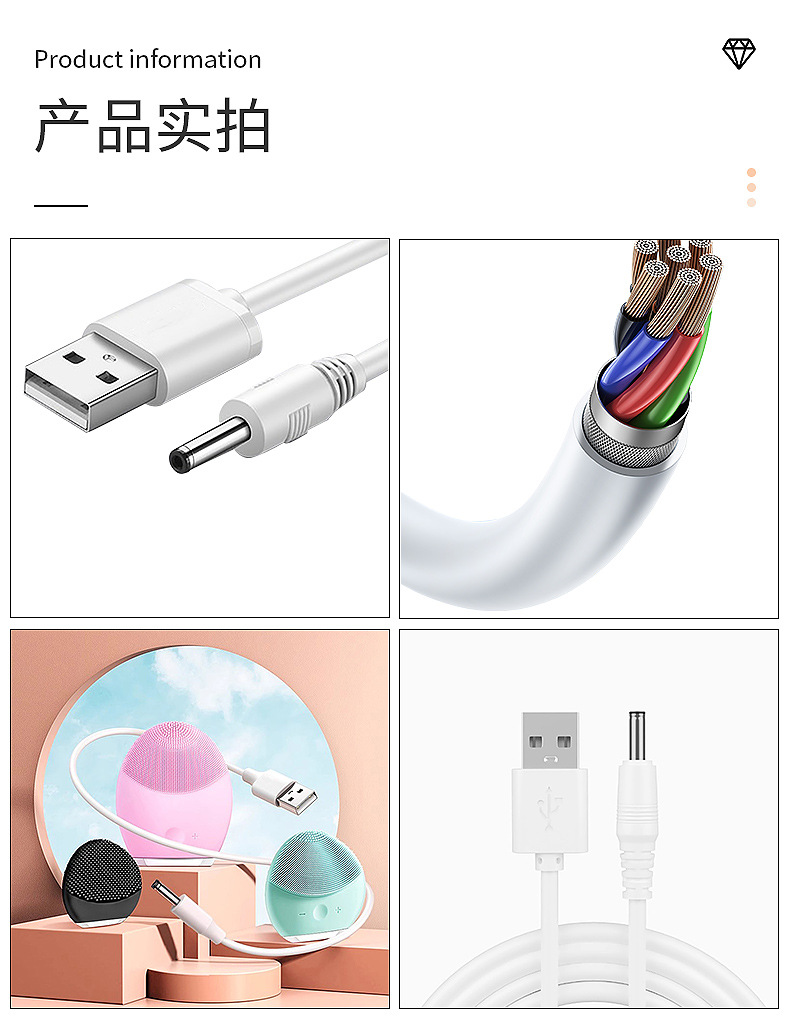 DC35135 cable de carga de agujero redondo lámpara de escritorio universal juguete de alimentación 5V cepillo de dientes eléctrico sonido nocturno adecuado paraforeo Luna limpiador luna lavafacial