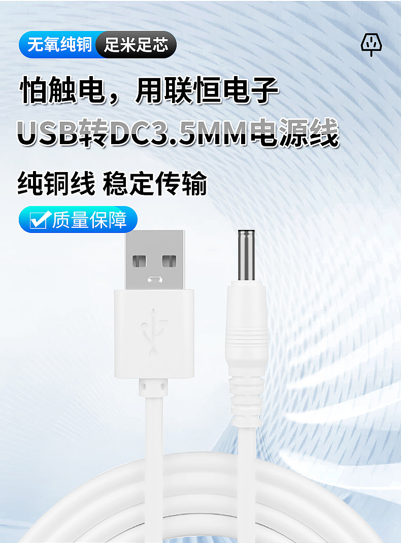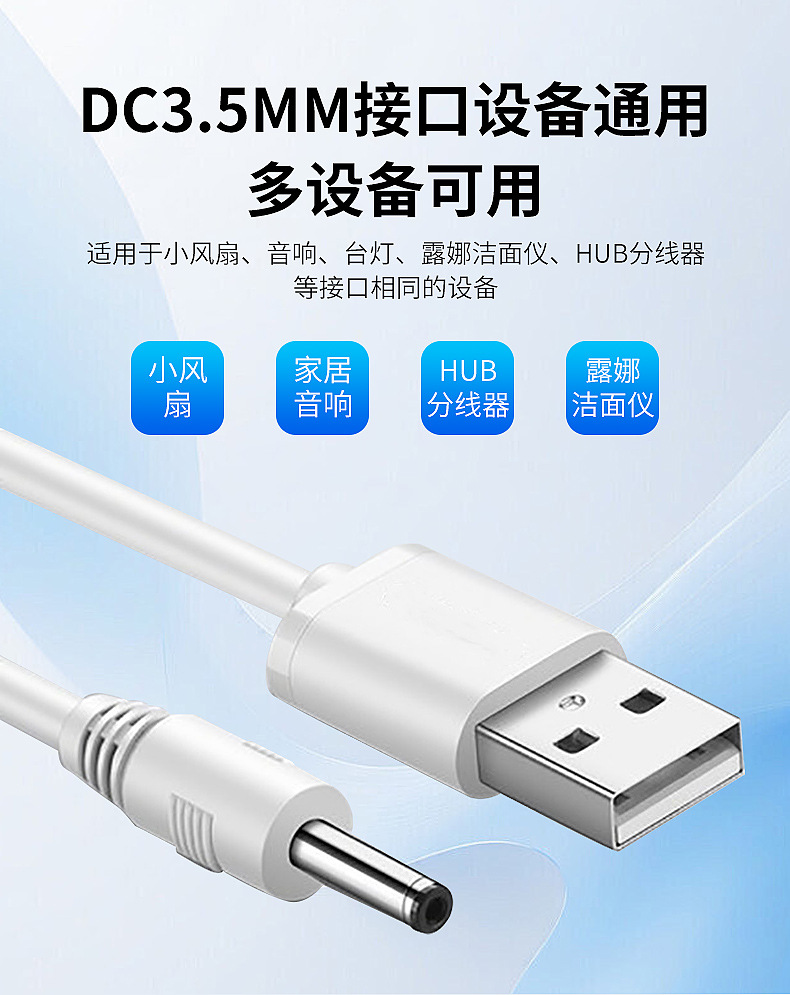 Cabezas redondas de carga de agujeros redondos USB a DC3.5mm cepillo de dientes eléctrico universal 5V lámpara de escritorio de noche juguetes de alimentación de sonido